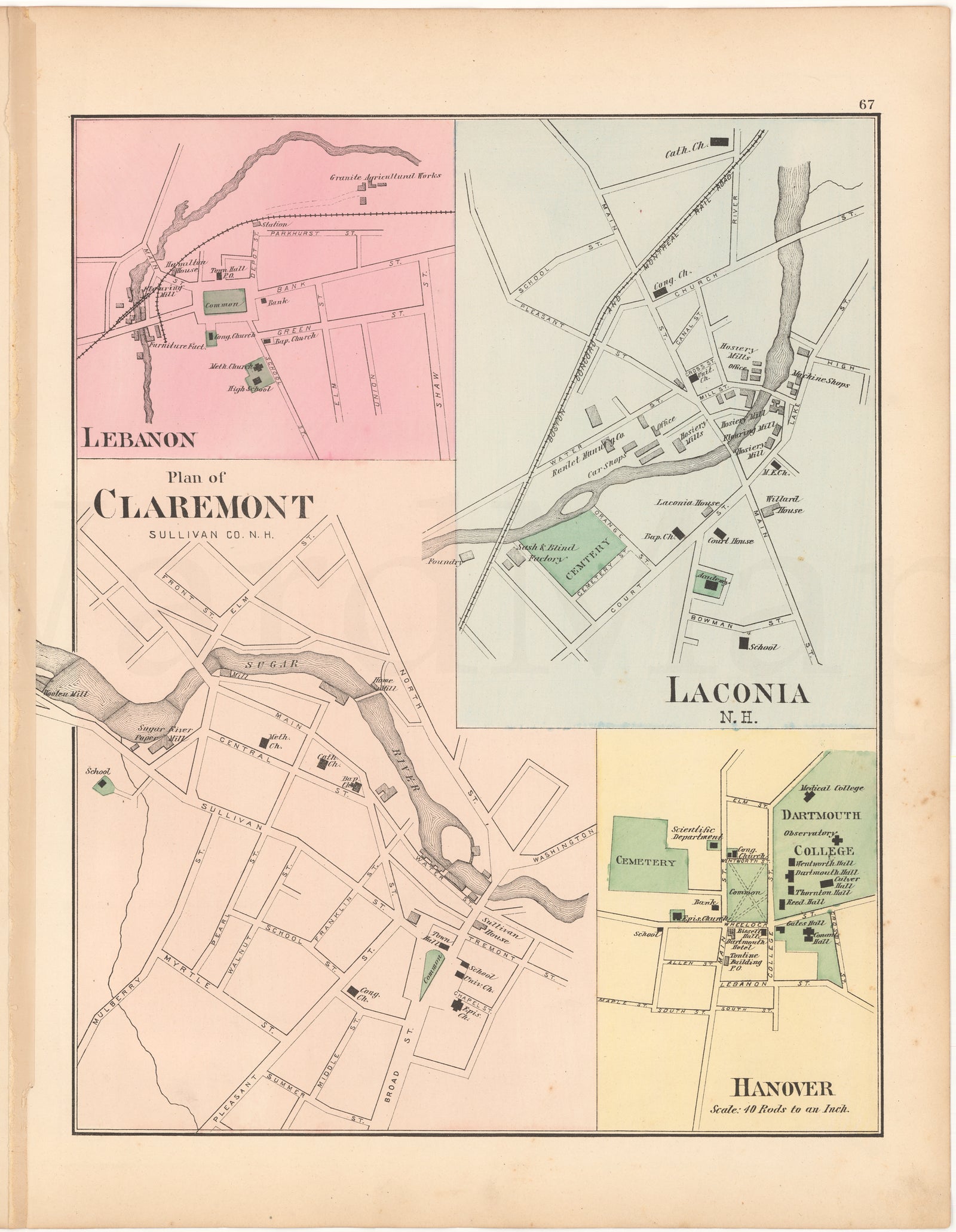 Claremont, Hanover, Laconia, and Lebanon Centers, New Hampshire 1877