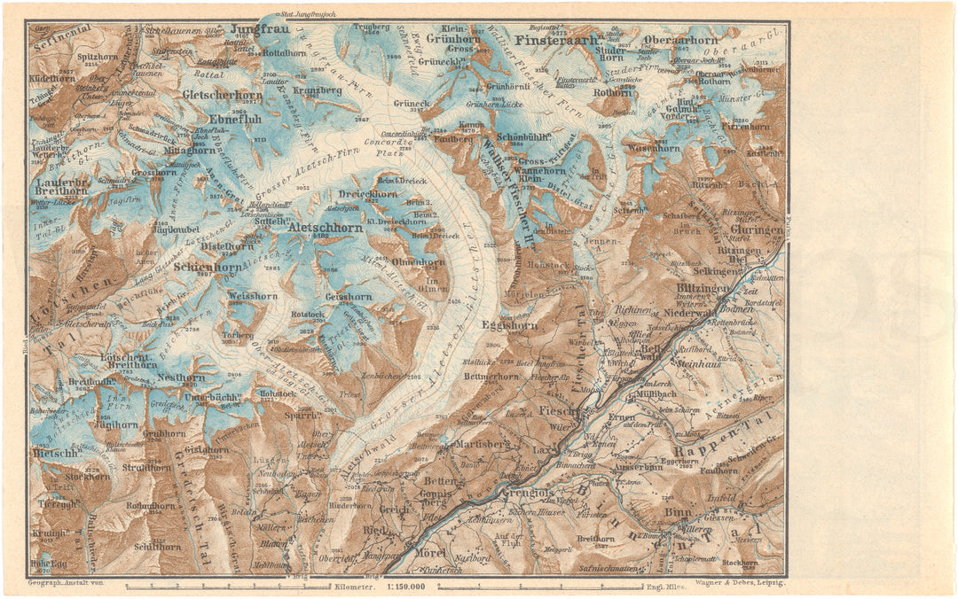 Jungfrau-Aletsch Mountains and Glaciers Region, Switzerland 1938