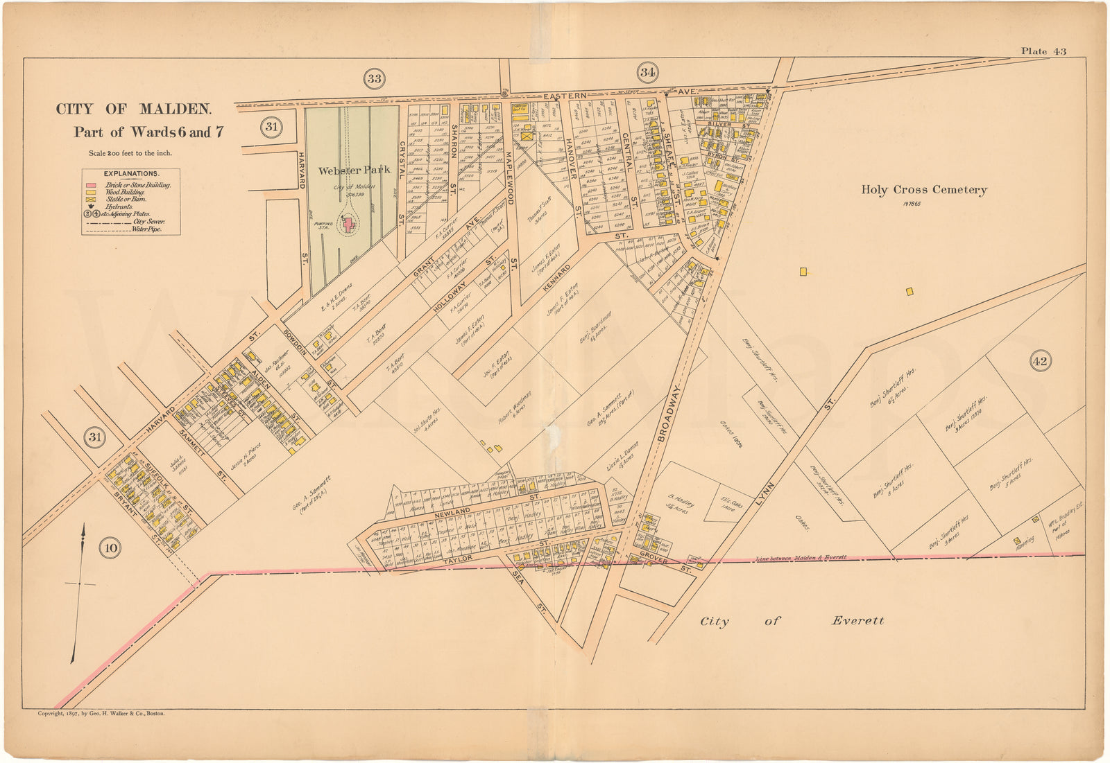 Malden, Massachusetts 1897 Plate 43: South Central Part