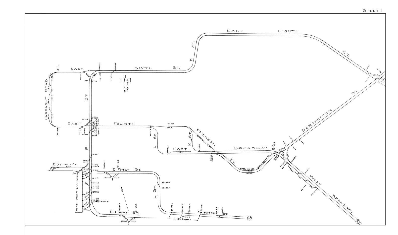 BERy Track Milage Map 1914 Plate 01: South Boston, Massachusetts