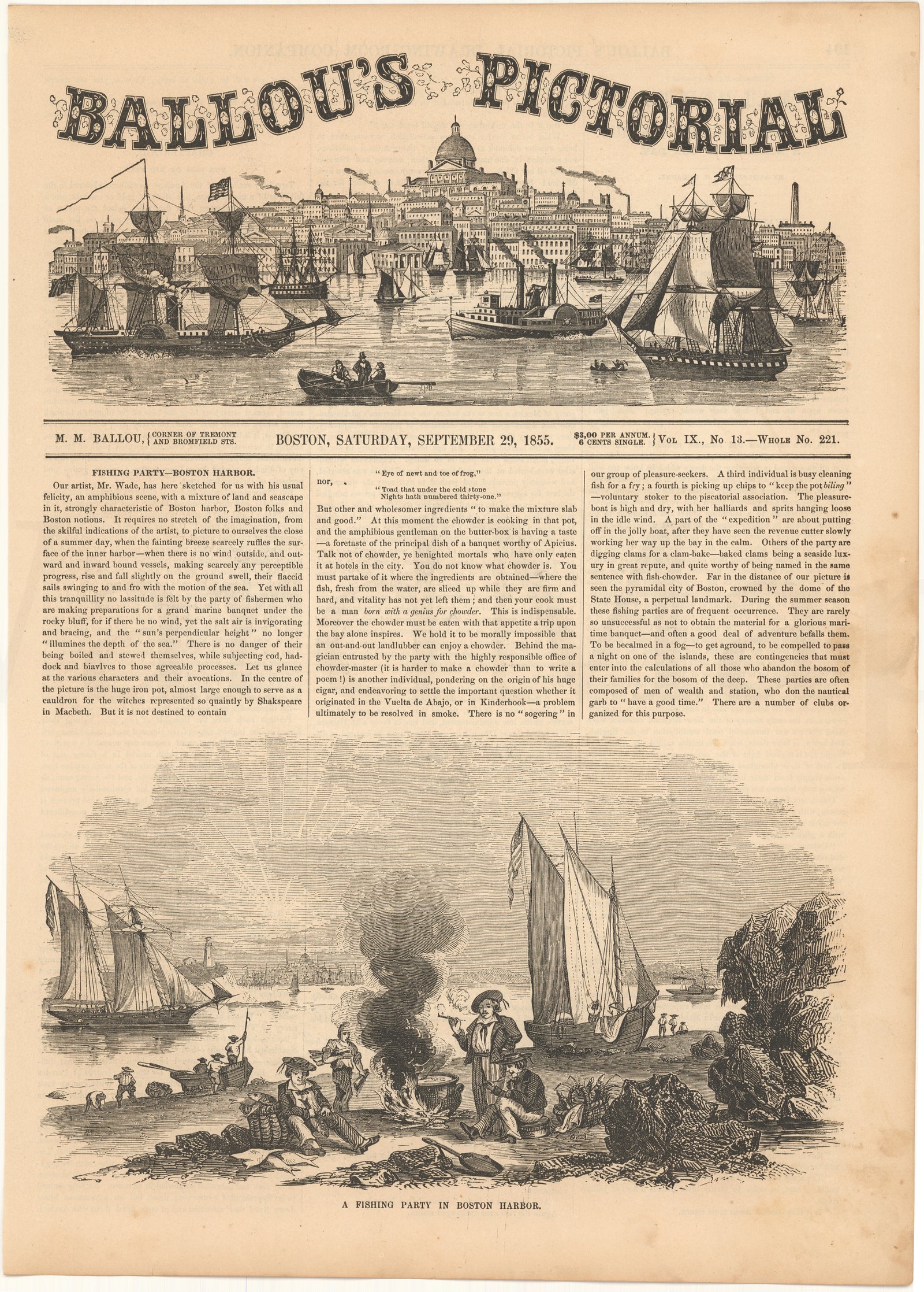 Ballou's Pictorial 1855 Sep 29: Fishing Party in Boston Harbor, Massachusetts