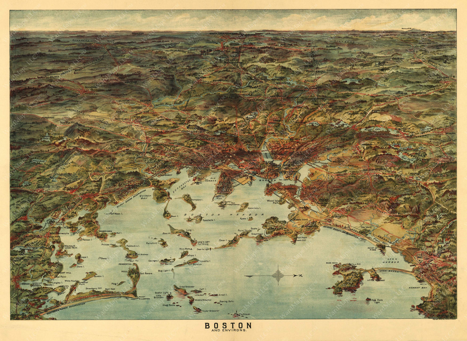 Boston Harbor and Boston Harbor Islands Antique Maps, Charts, and Prin