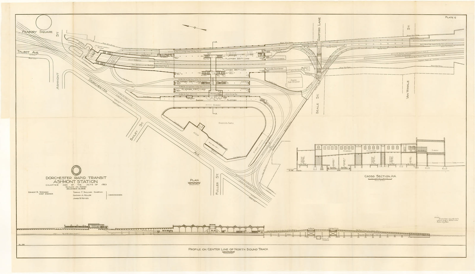 BTD Report 1928 Plate 06: Ashmont Station Plan and Sections, Dorchester, Massachusetts