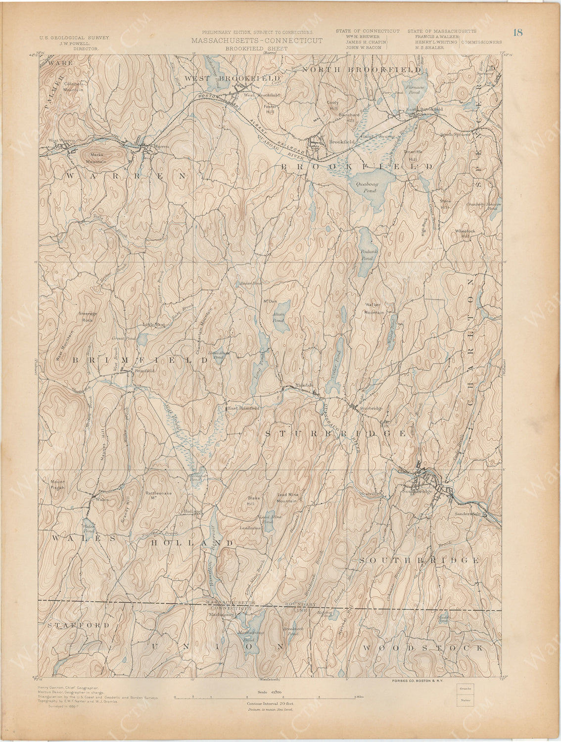 USGS Massachusetts 1890 Plate 018: Brookfield Sheet