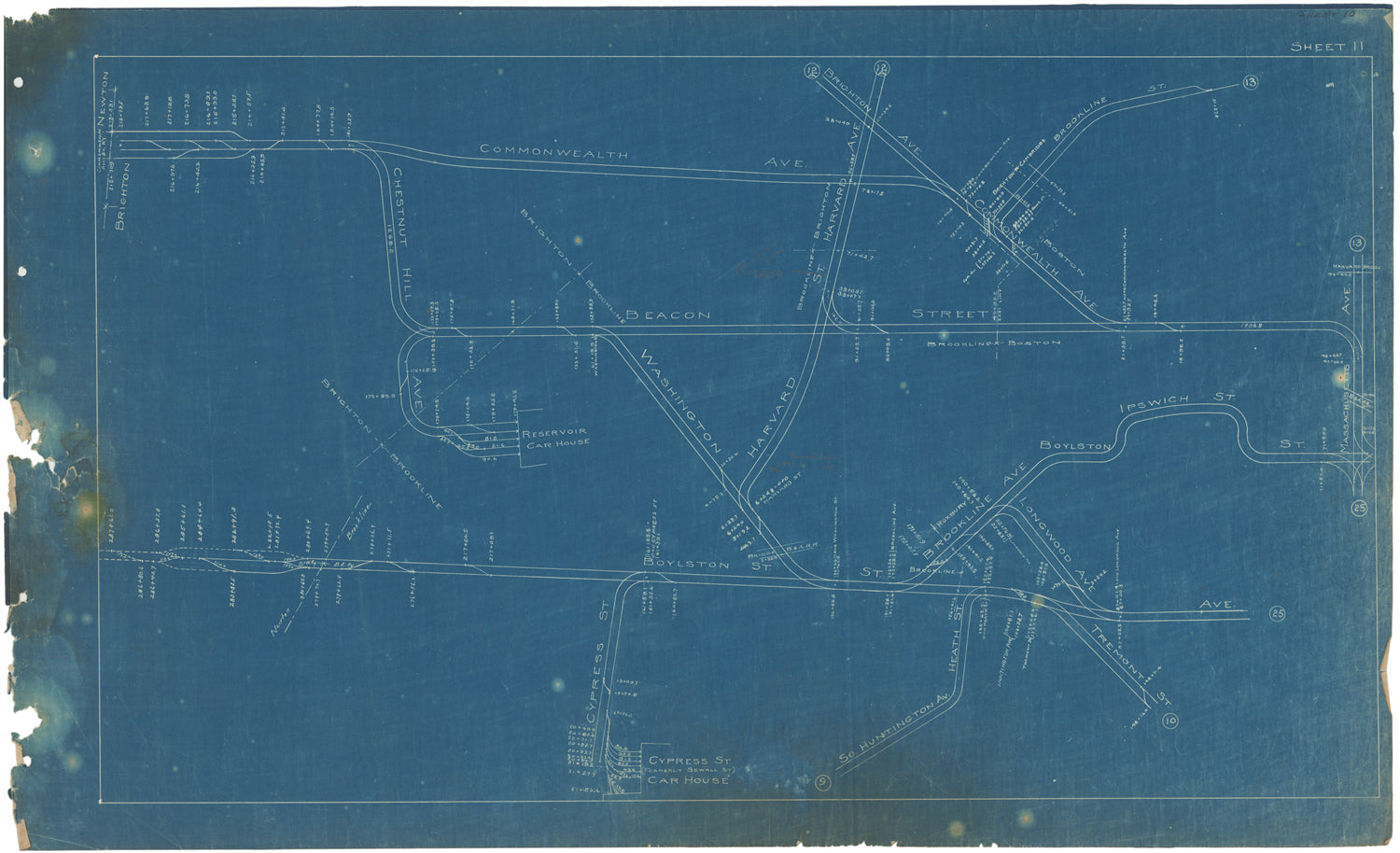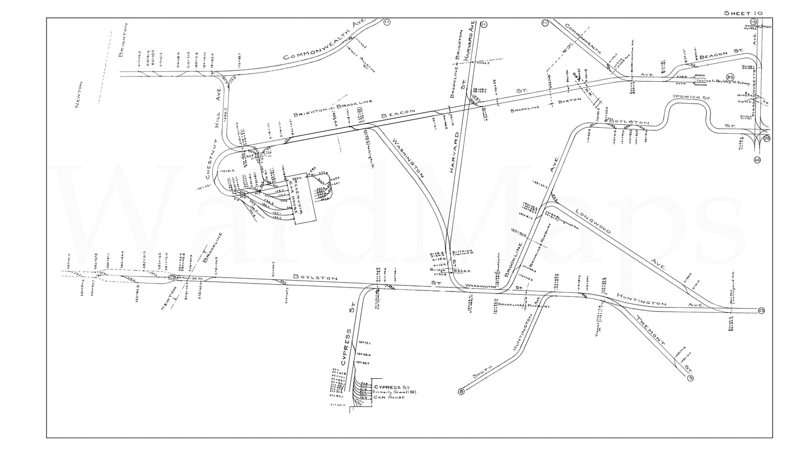 BERy Track Milage Map 1919 Plate 10: Brighton and Brookline, Massachusetts