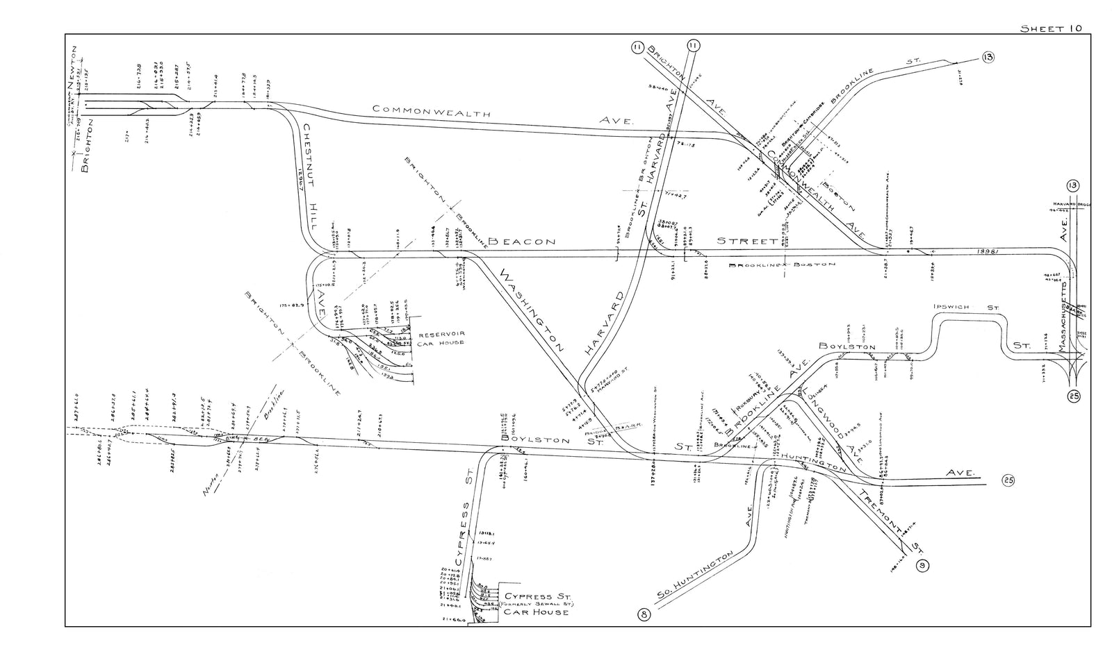 BERy Track Milage Map 1914 Plate 10: Brighton and Brookline, Massachusetts