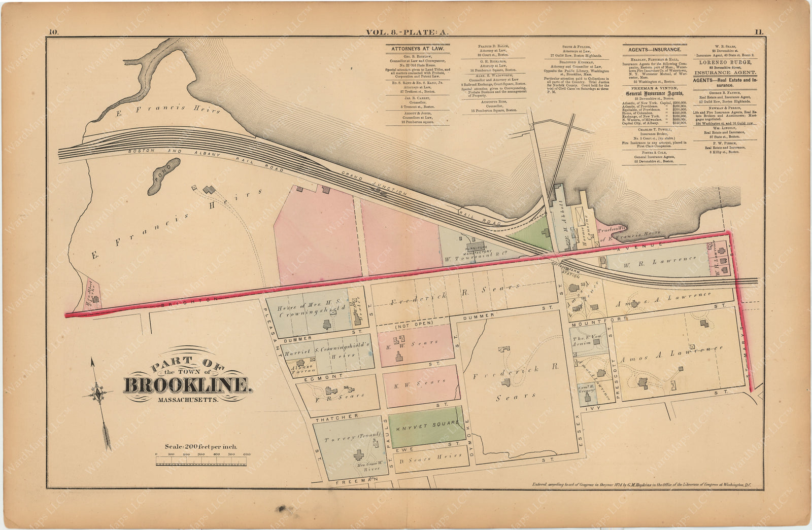 Brookline, Massachusetts 1874 Plate A