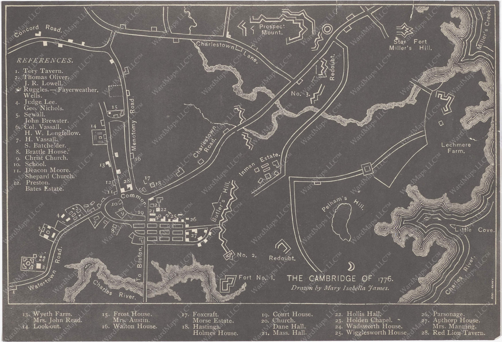 This is a collection of maps, plans, and other diagrams licensed from the archives of the Cambridge Historical Society, Cambridge, Massachusetts.