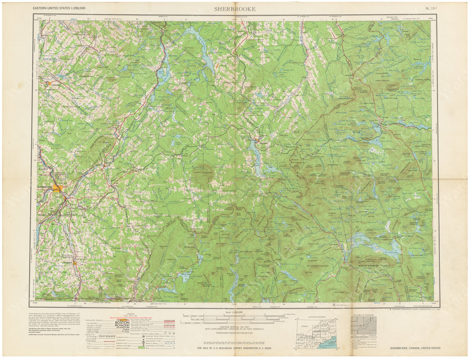 USGS Maine, New Hampshire, and Quebec: Sherbrooke Sheet 1966