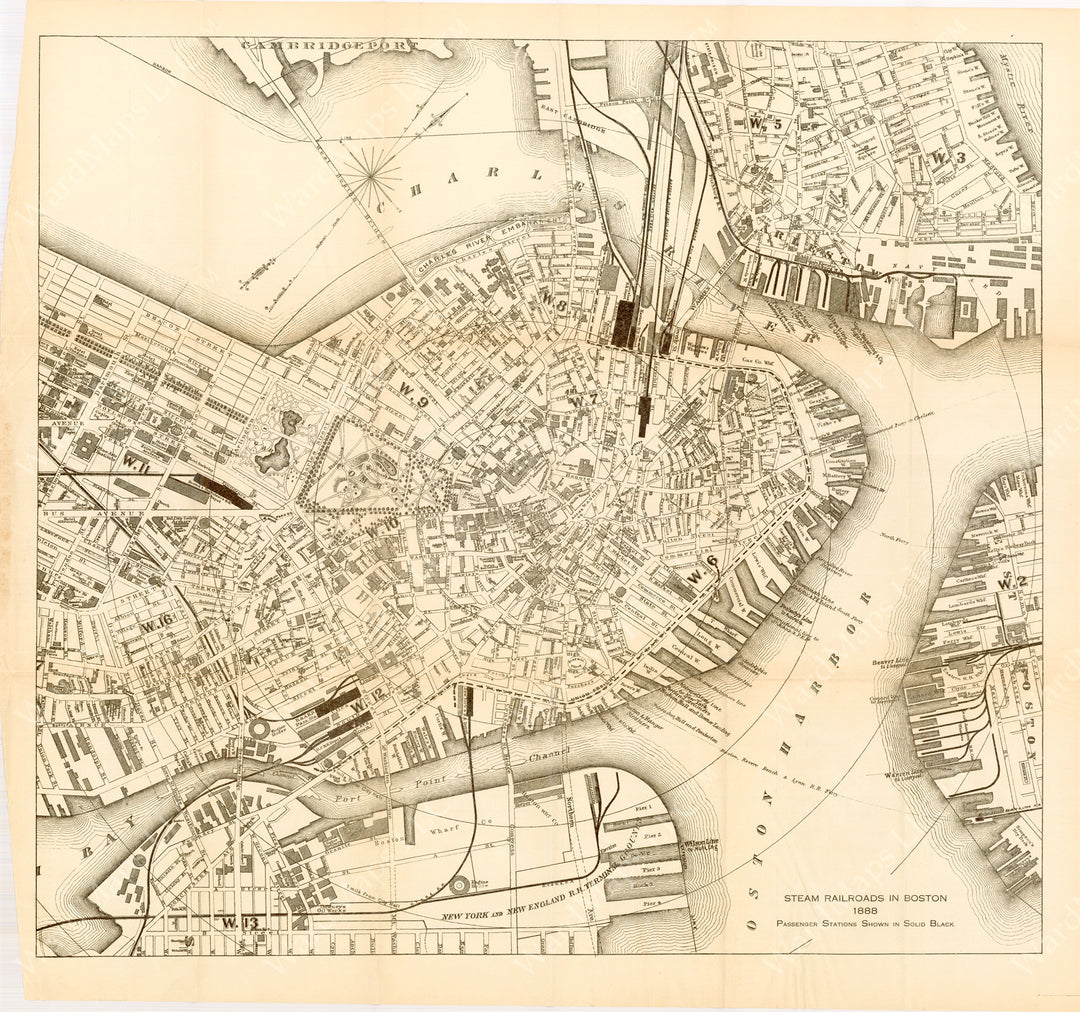 Steam Railroads and Passenger Stations in Boston, Massachusetts 1888
