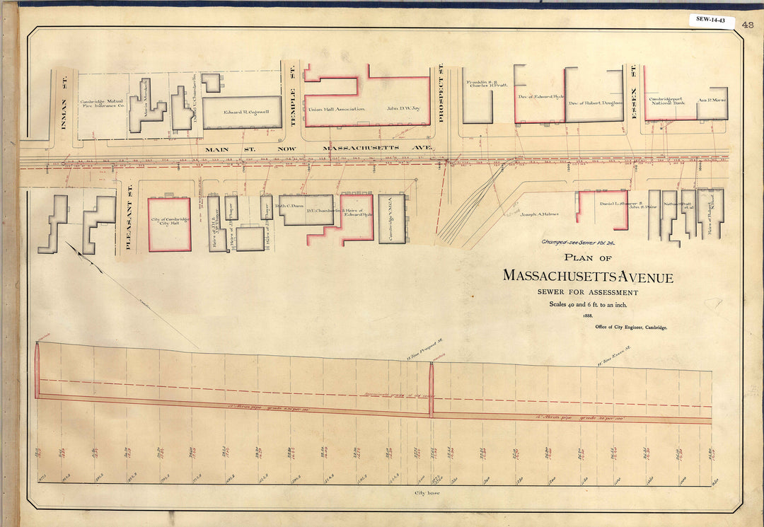 Cambridge, Massachusetts Sewers 14-43: Massachusetts Avenue 1888 (Central Square)