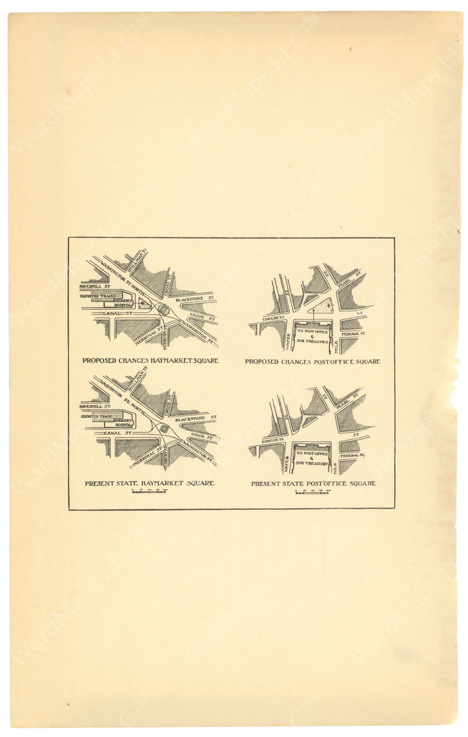 Boston, Massachusetts 1909: Proposed Changes at Haymarket and Post Office Squares
