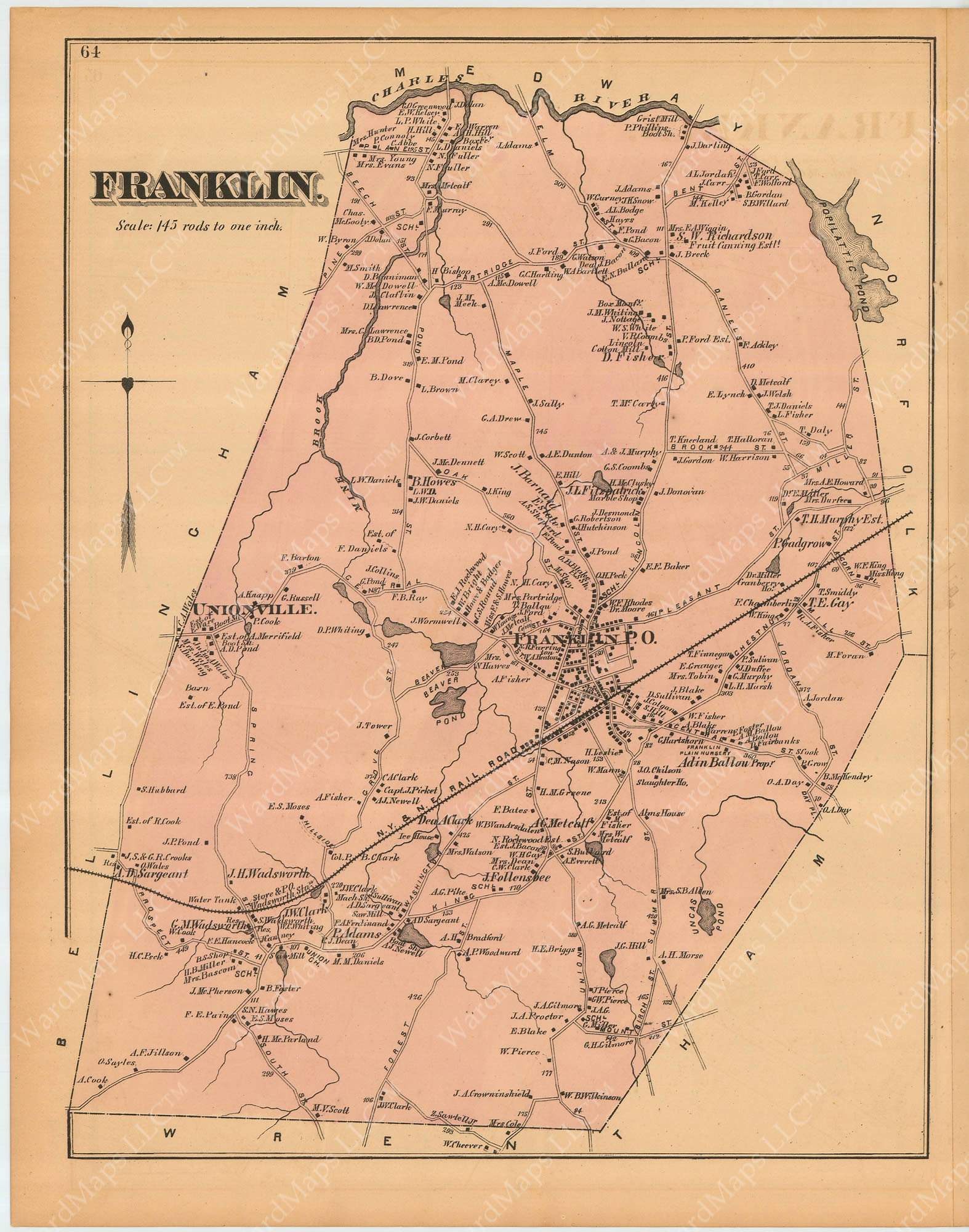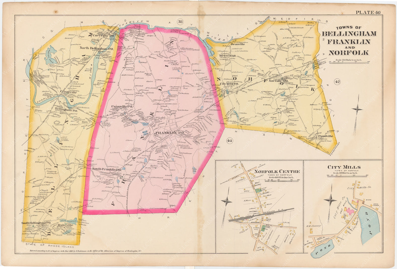 Norfolk County, Massachusetts 1888 Plate 040: Bellingham, Franklin, and Norfolk