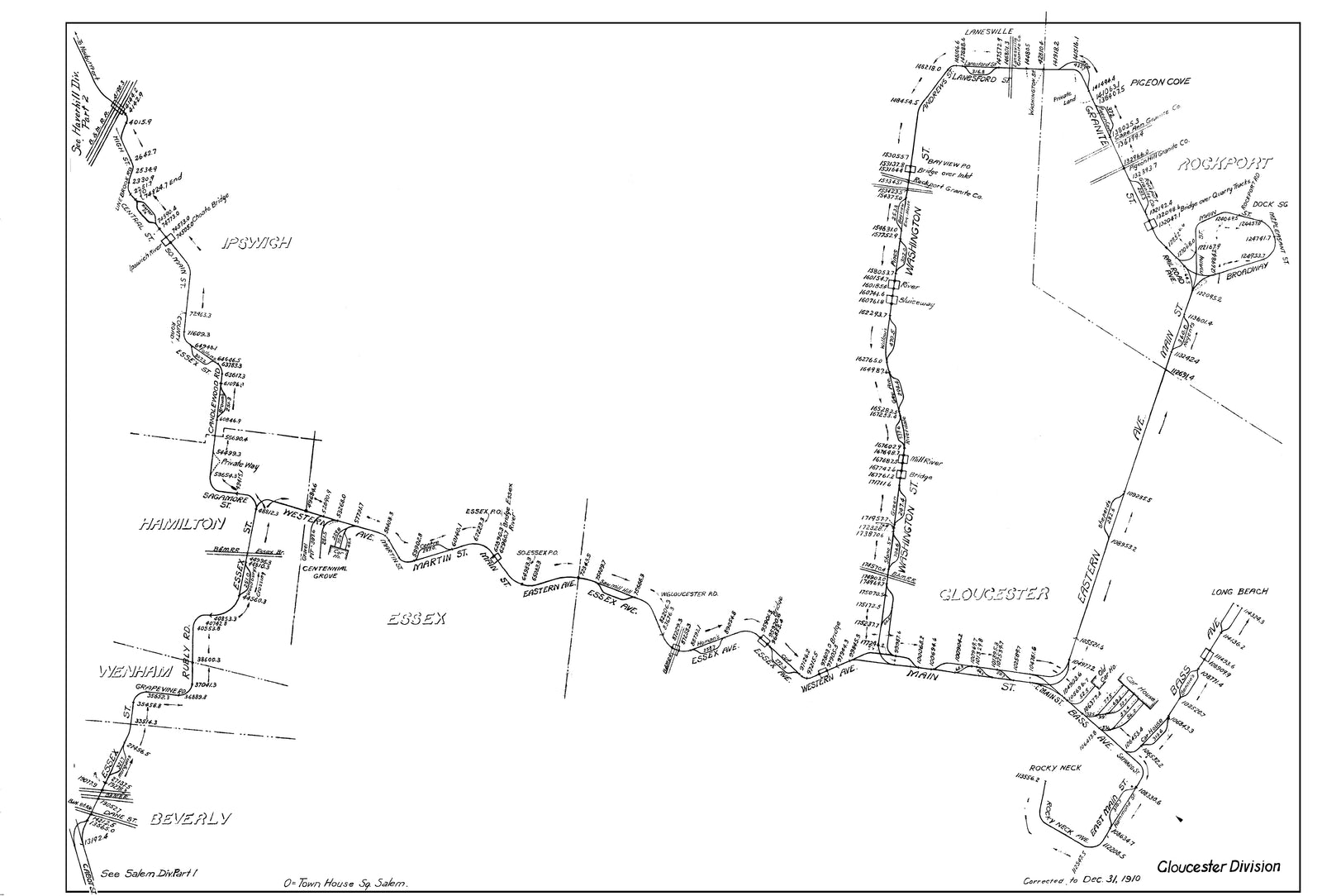 Boston & Northern Street Railway Co. (Massachusetts) Milage Map 1910: Gloucester Division