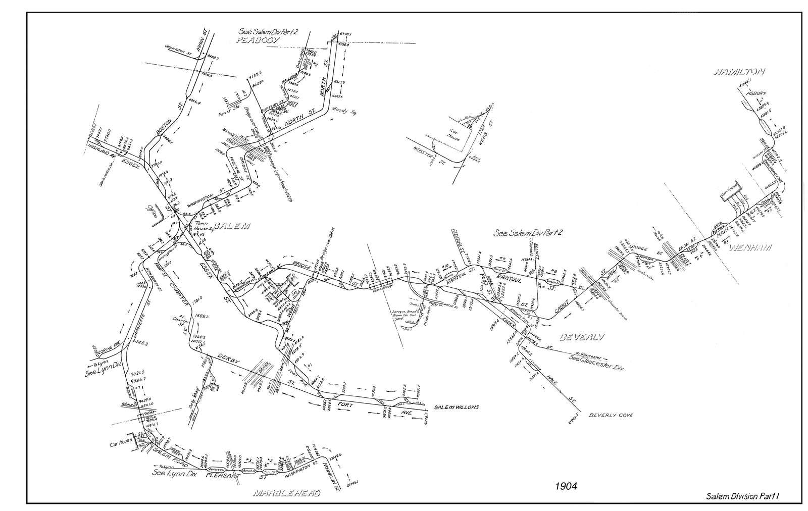 Boston & Northern Street Railway Co. (Massachusetts) Milage Map 1910: Salem Division Part 1
