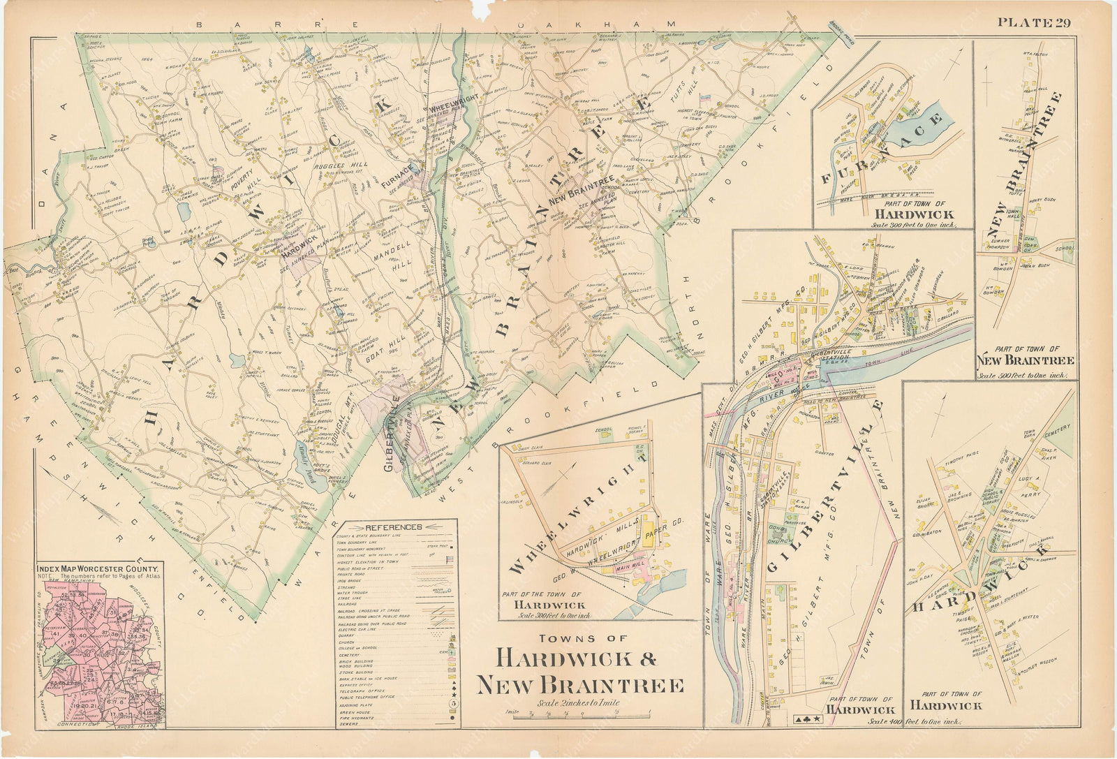 Worcester County, Massachusetts 1898 Plate 029: Hardwick and New Braintree