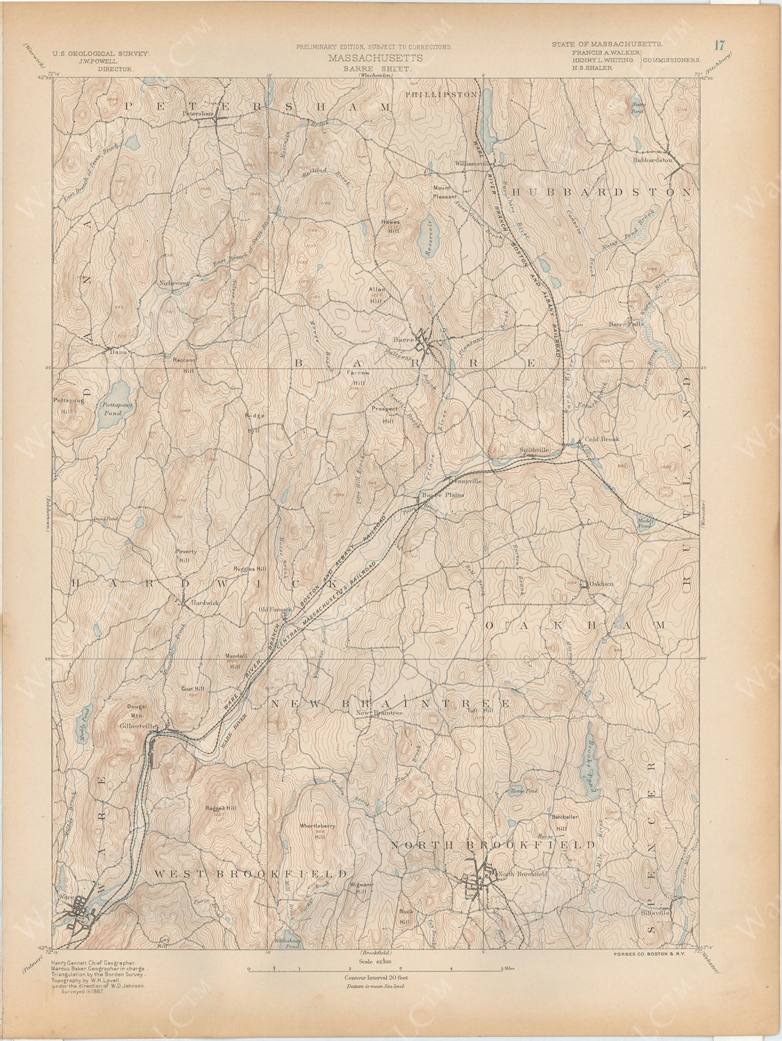 USGS Massachusetts 1890 Plate 017: Barre Sheet