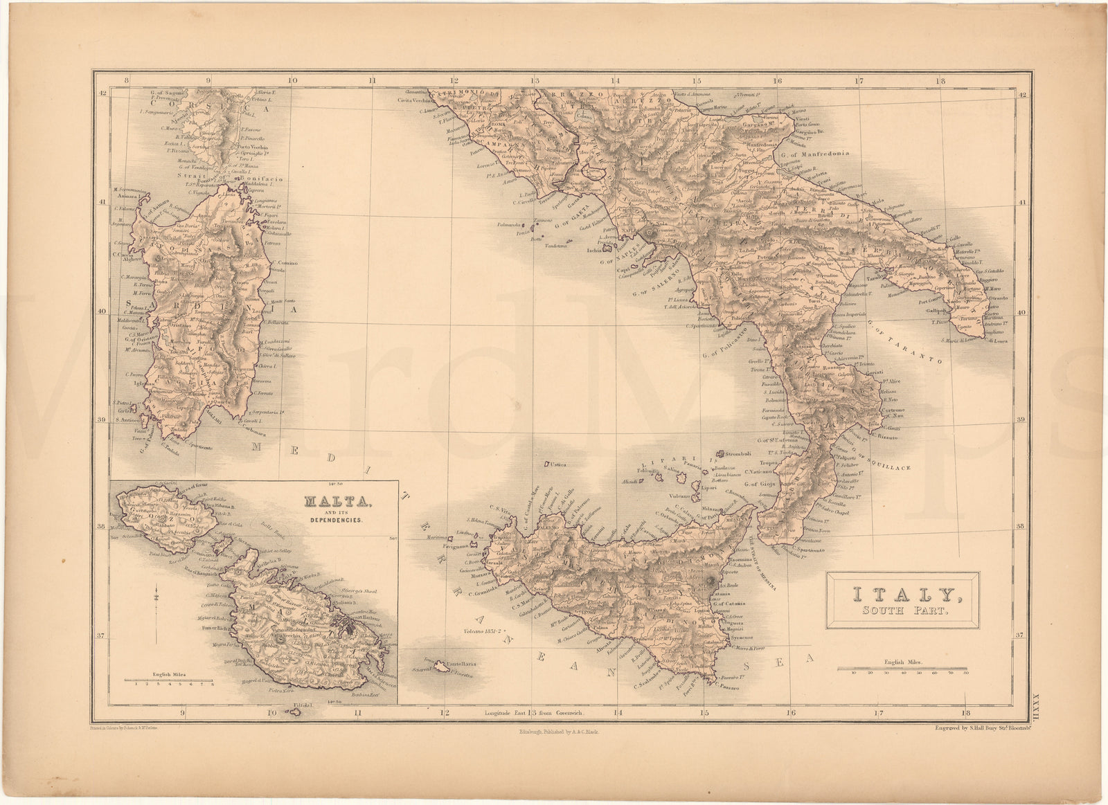 Italy 1857: South Part and Malta