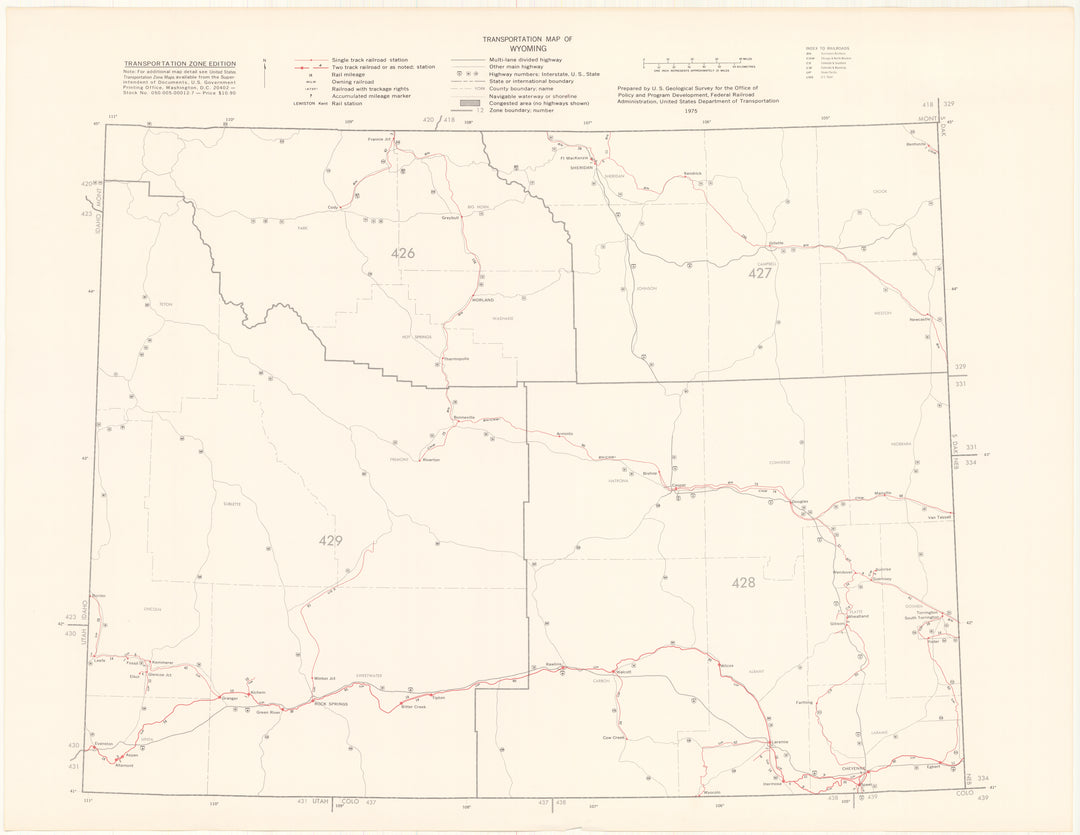 Wyoming Transportation Map 1975: Zone Edition