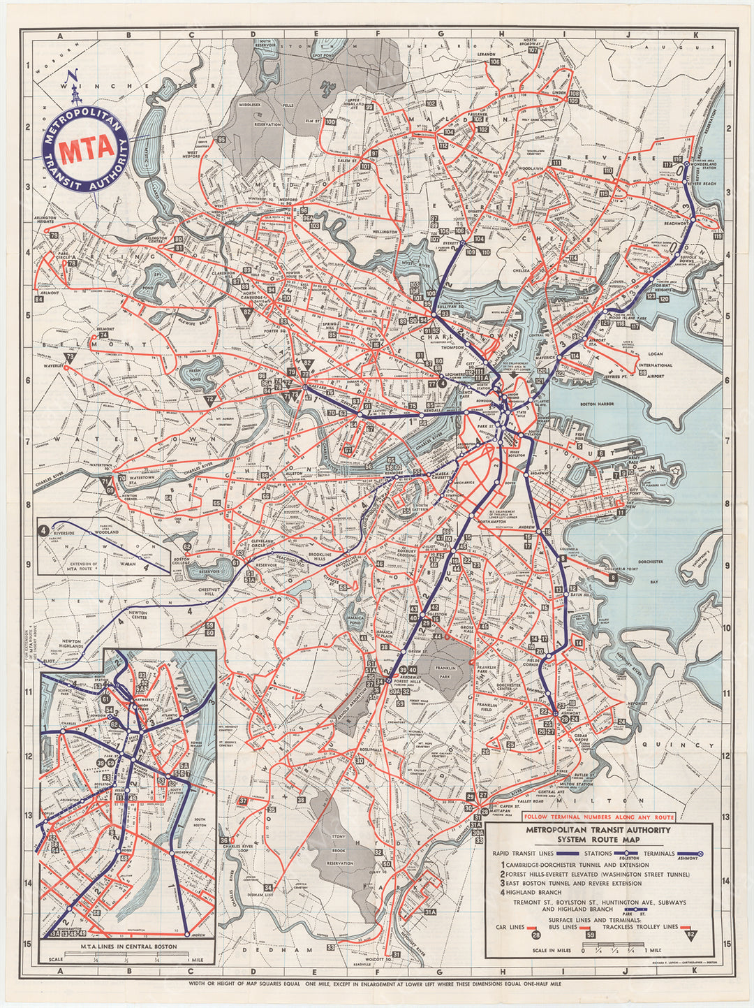 Boston, Massachusetts MTA System Route Map #6 1959 - Charlie on the MTA Edition