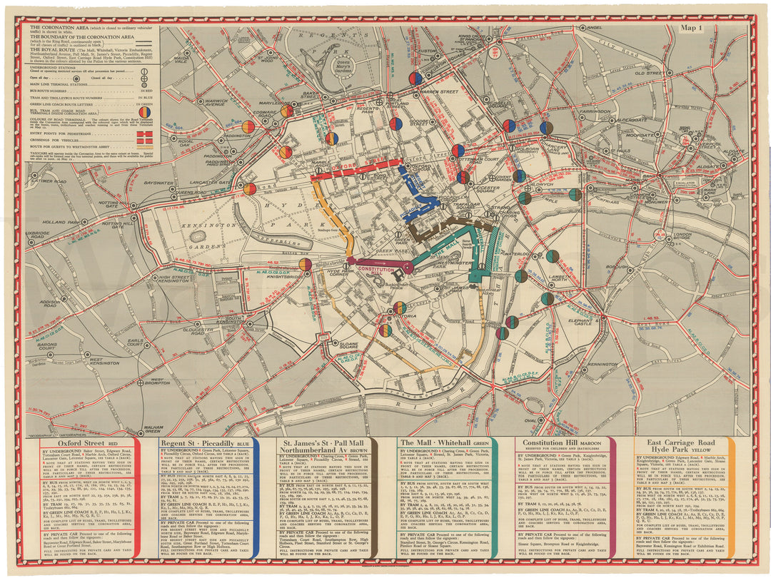 London 1953: Map for the June 2 Coronation of Queen Elizabeth II