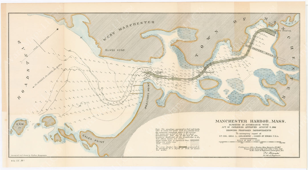Manchester Harbor, Massachusetts 1886 Showing Proposed Imporovements