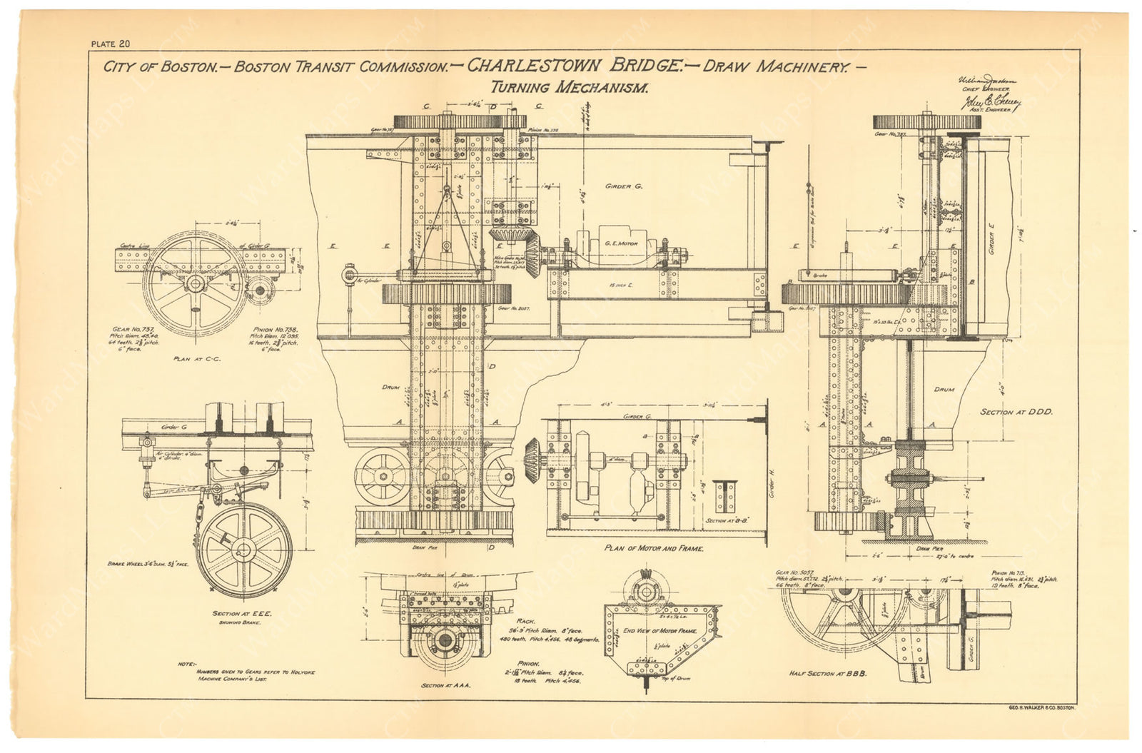 BTC Report 06 1900 Plate 20: Charlestown Bridge Draw Machinery, Boston, Massachusetts