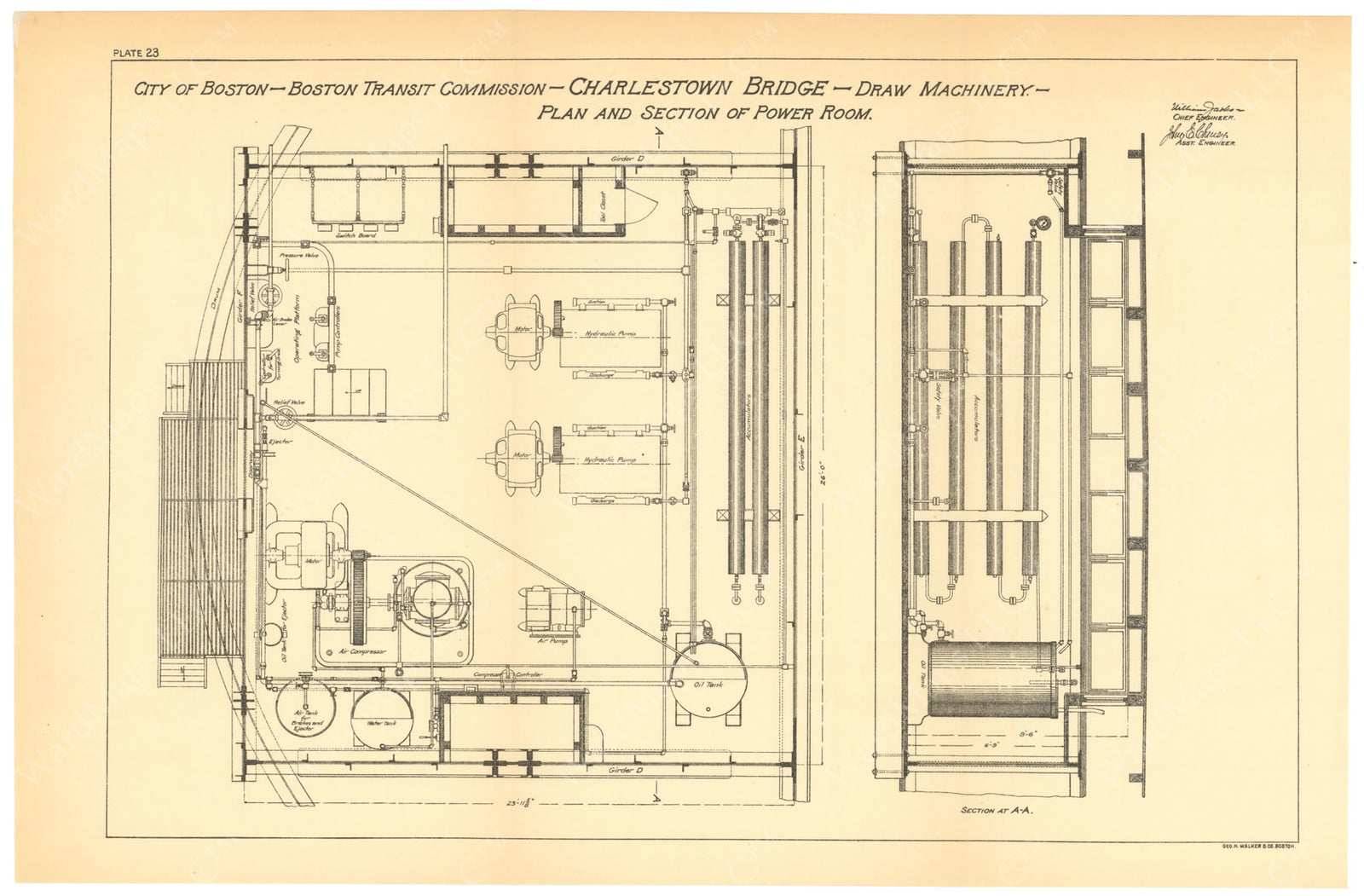 BTC Report 06 1900 Plate 23: Charlestown Bridge Power Room, Boston, Massachusetts
