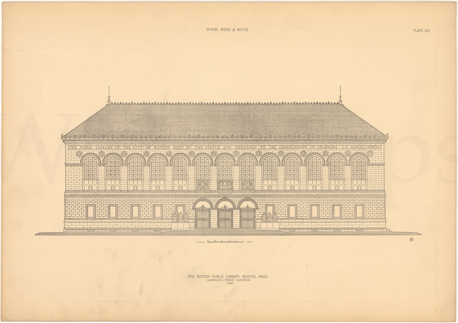McKim, Mead & White Plate 101: Boston Public Library Elevation, Boston, Massachusetts 1898