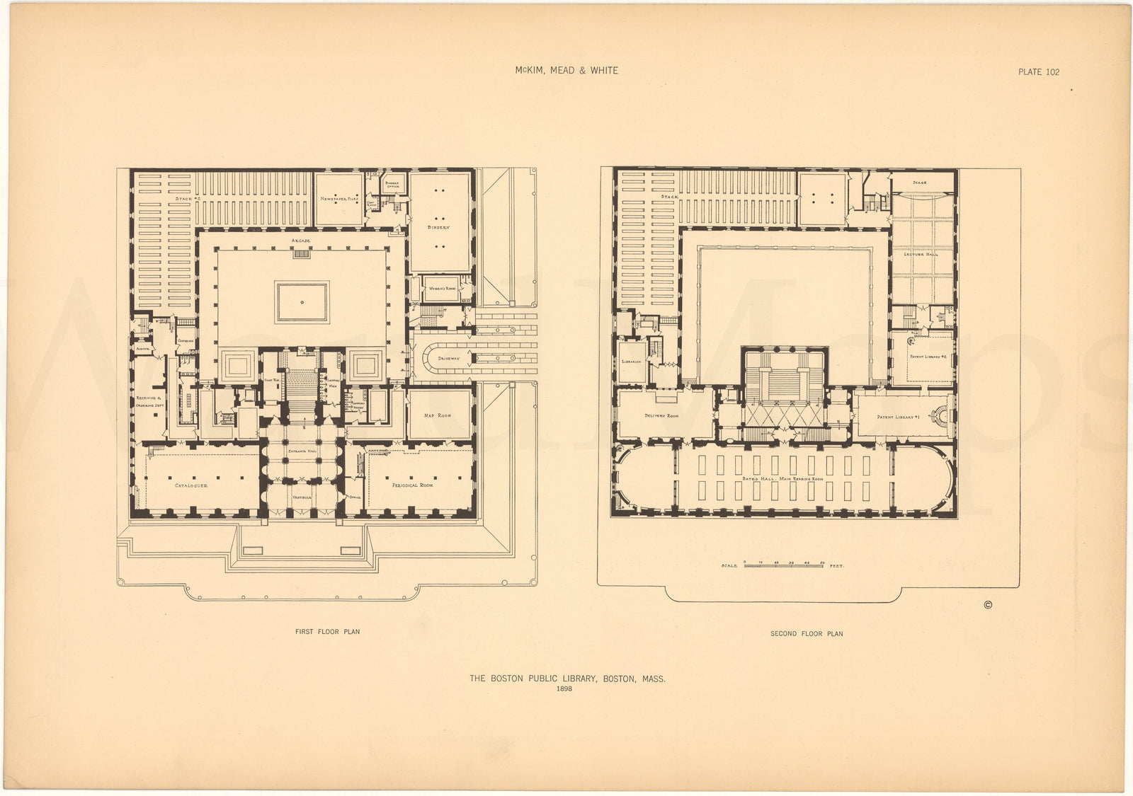 McKim, Mead & White Plate 102: Boston Public Library Plans, Boston, Massachusetts 1898