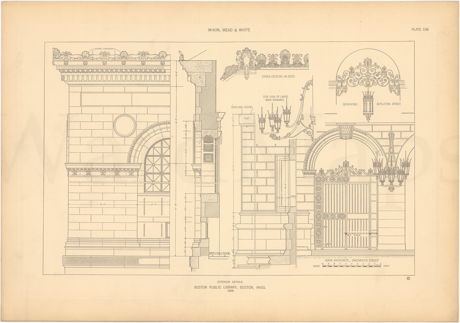 McKim, Mead & White Plate 108: Boston Public Library Details, Boston, Massachusetts 1898