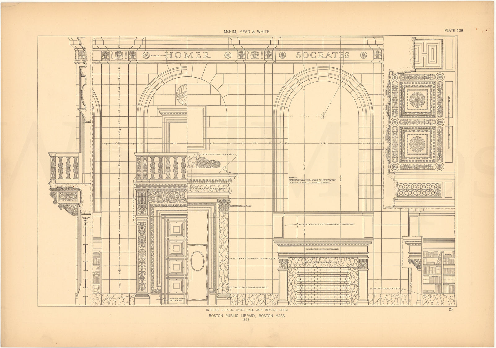 McKim, Mead & White Plate 109: Boston Public Library Details, Boston, Massachusetts 1898