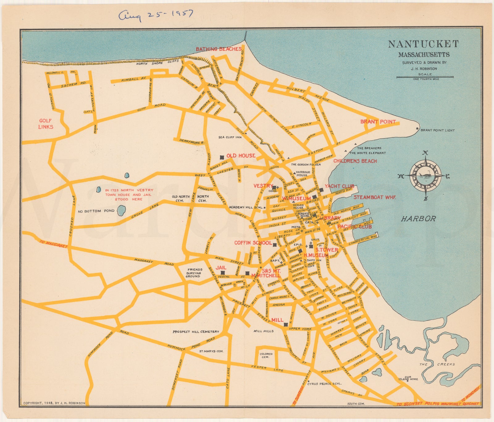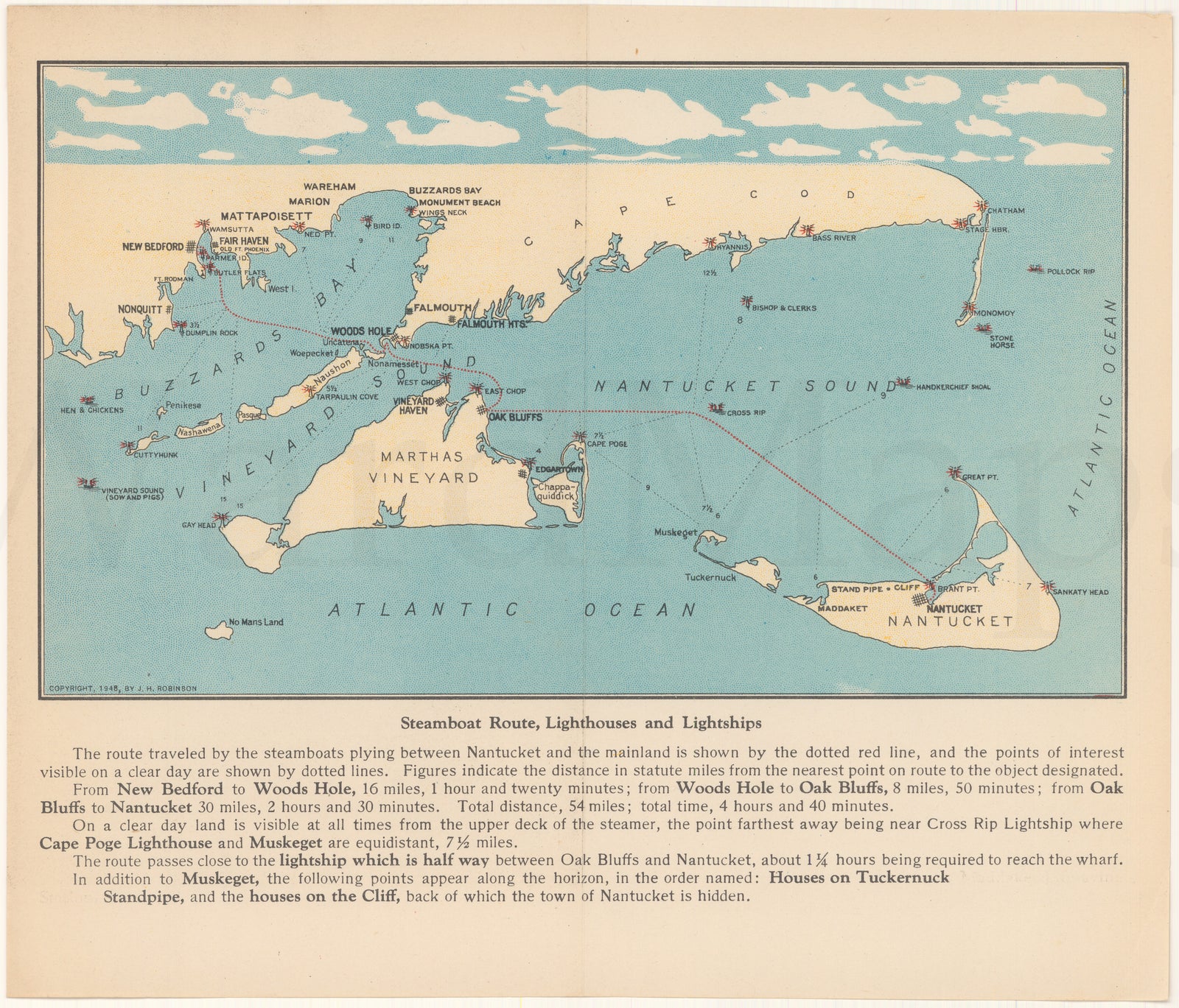 Southeastern Massachusetts Steamboat Routes, Lighthouses, and Lightships 1948