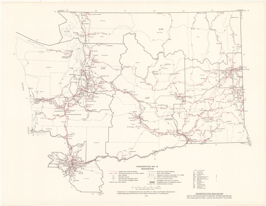 Washington Transportation Map 1975: Zone Edition