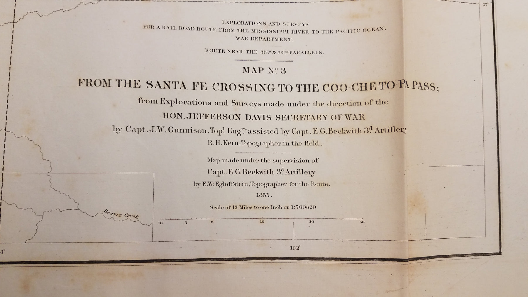 Title: Map No. 3 From The Santa Fe Crossing to The Coo-Che-To-Pa Pass; from Explorations and Surveys made under the direction of the Hon. Jefferson Davis Secretary of War, by Capt. J.W. Gunnison Top. Engrs. assisted by Capt. E.G. Beckwith 3d Artillery, R.H. Kern, Topographer in the Field...