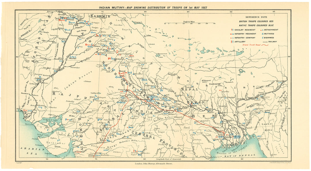 Northern India Showing Distribution of Troops on May 1, 1857 (published 1920)