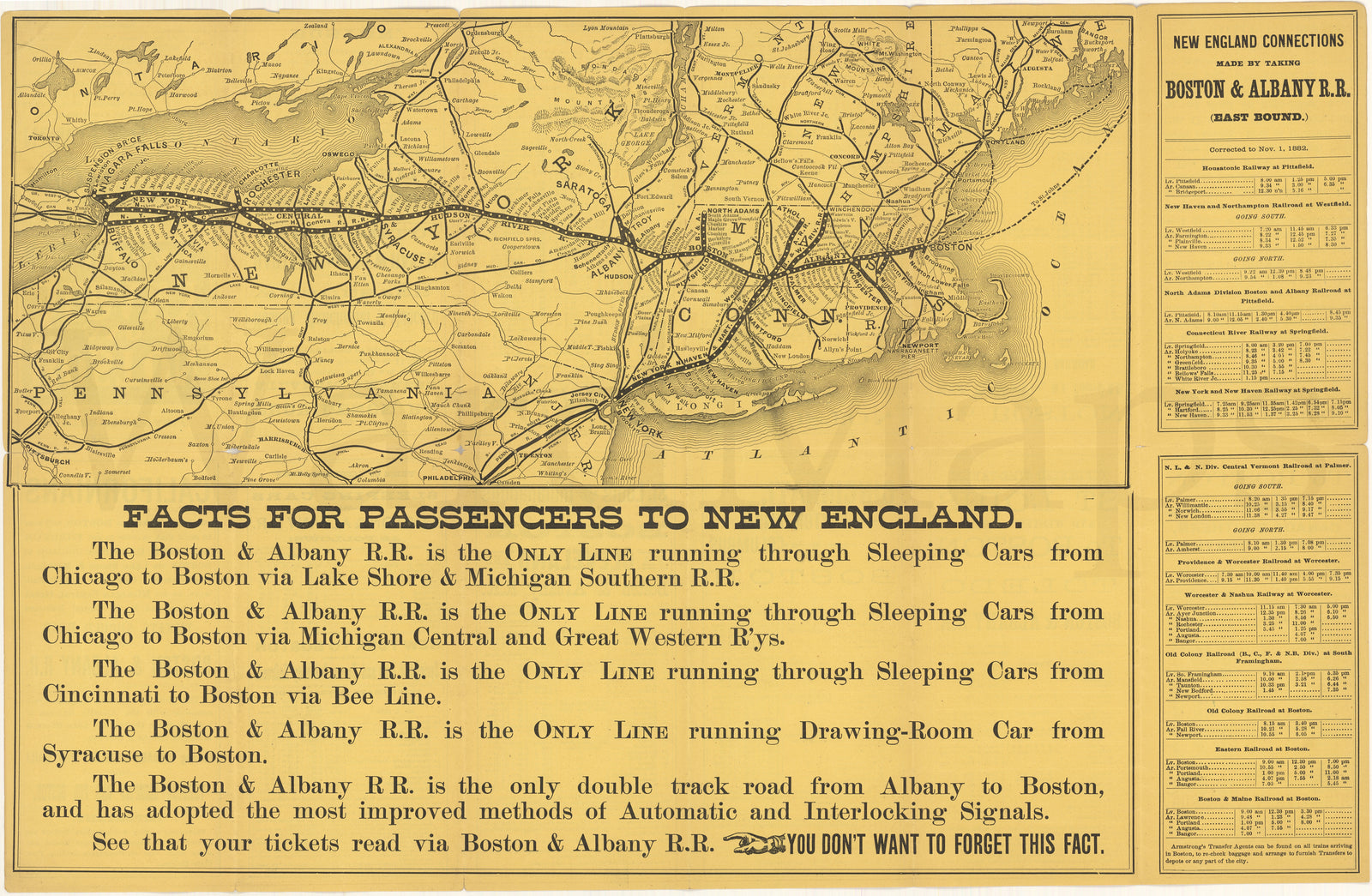 Boston & Albany Railroad 1892 Folding Timetable with Map