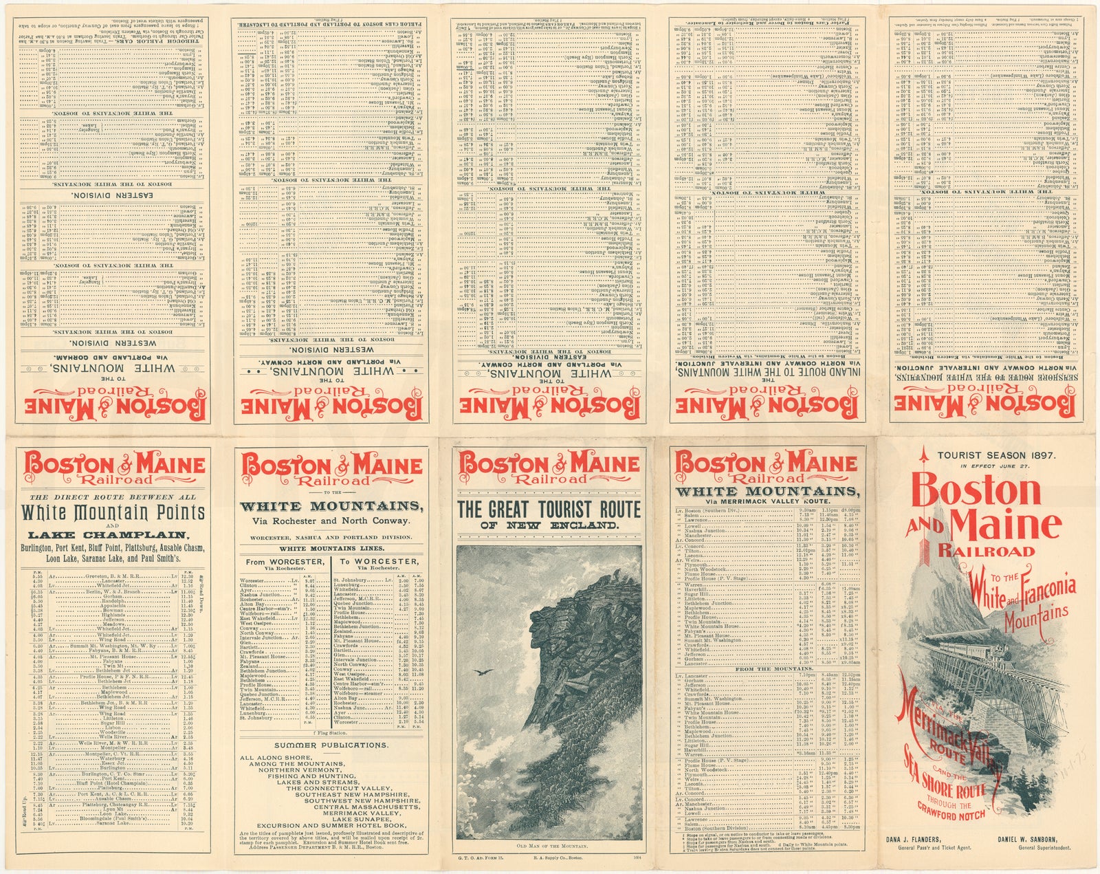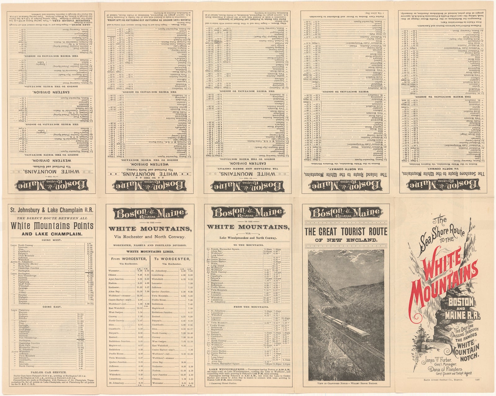 Boston & Maine Railroad Timetable and Map 1897 White Mountains (Side A)