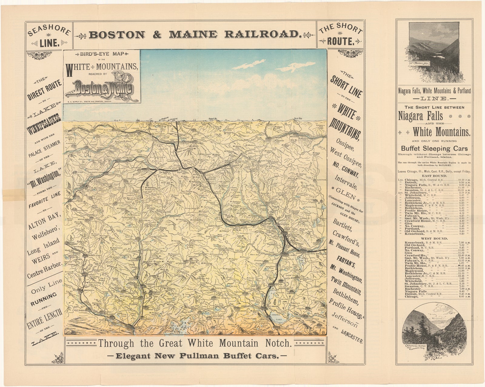 Boston & Maine Railroad Timetable and Map 1895 (circa) White Mountains (Side A)