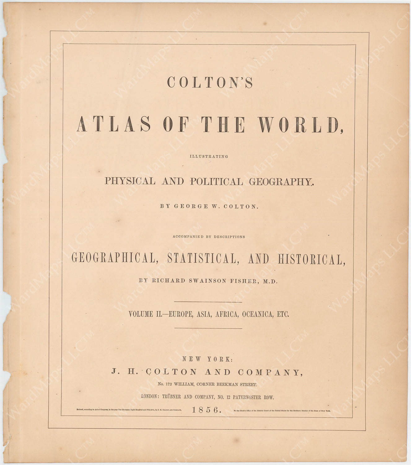 Colton's Atlas of the World 1856 Vol. II: Title Page