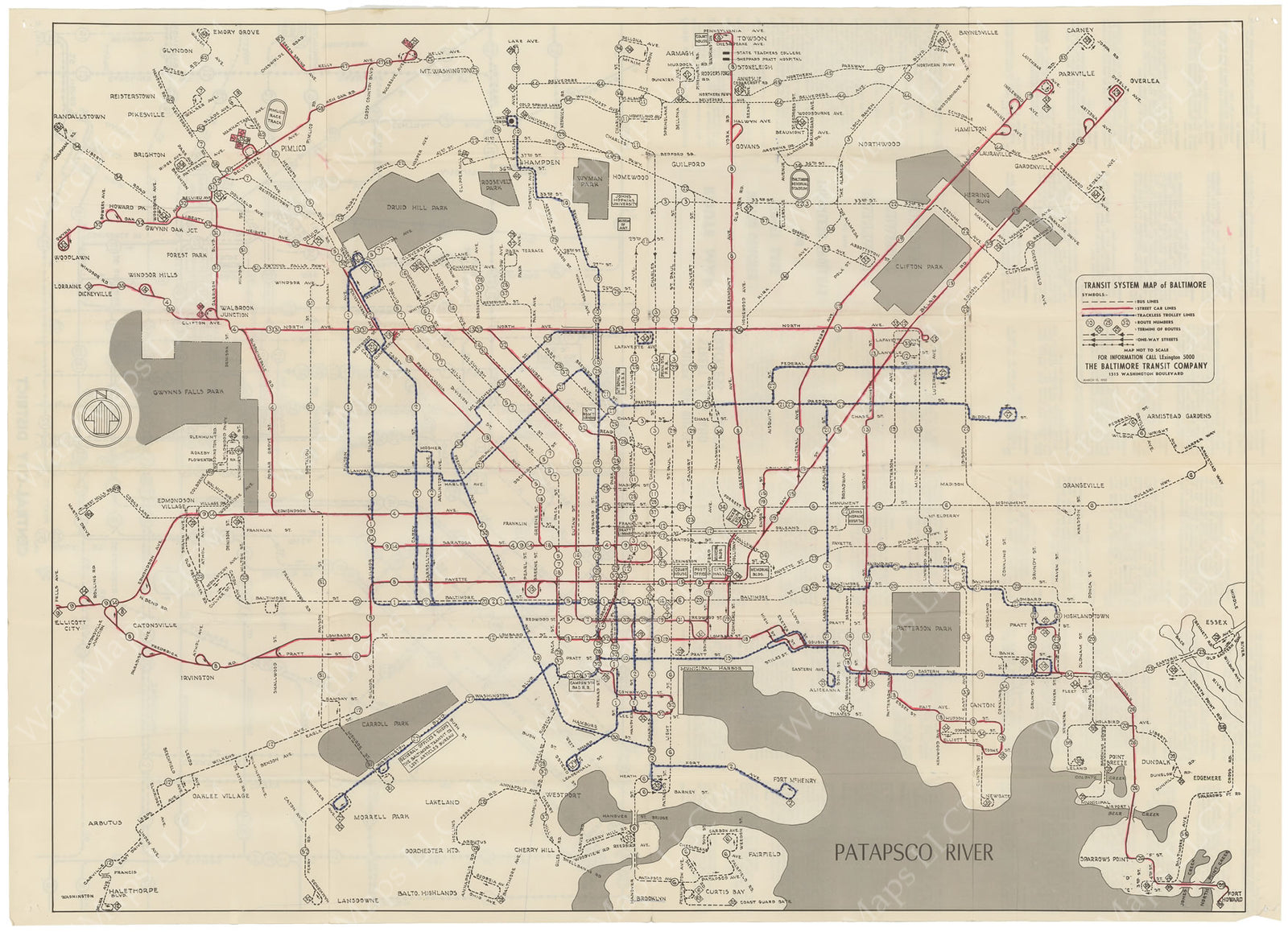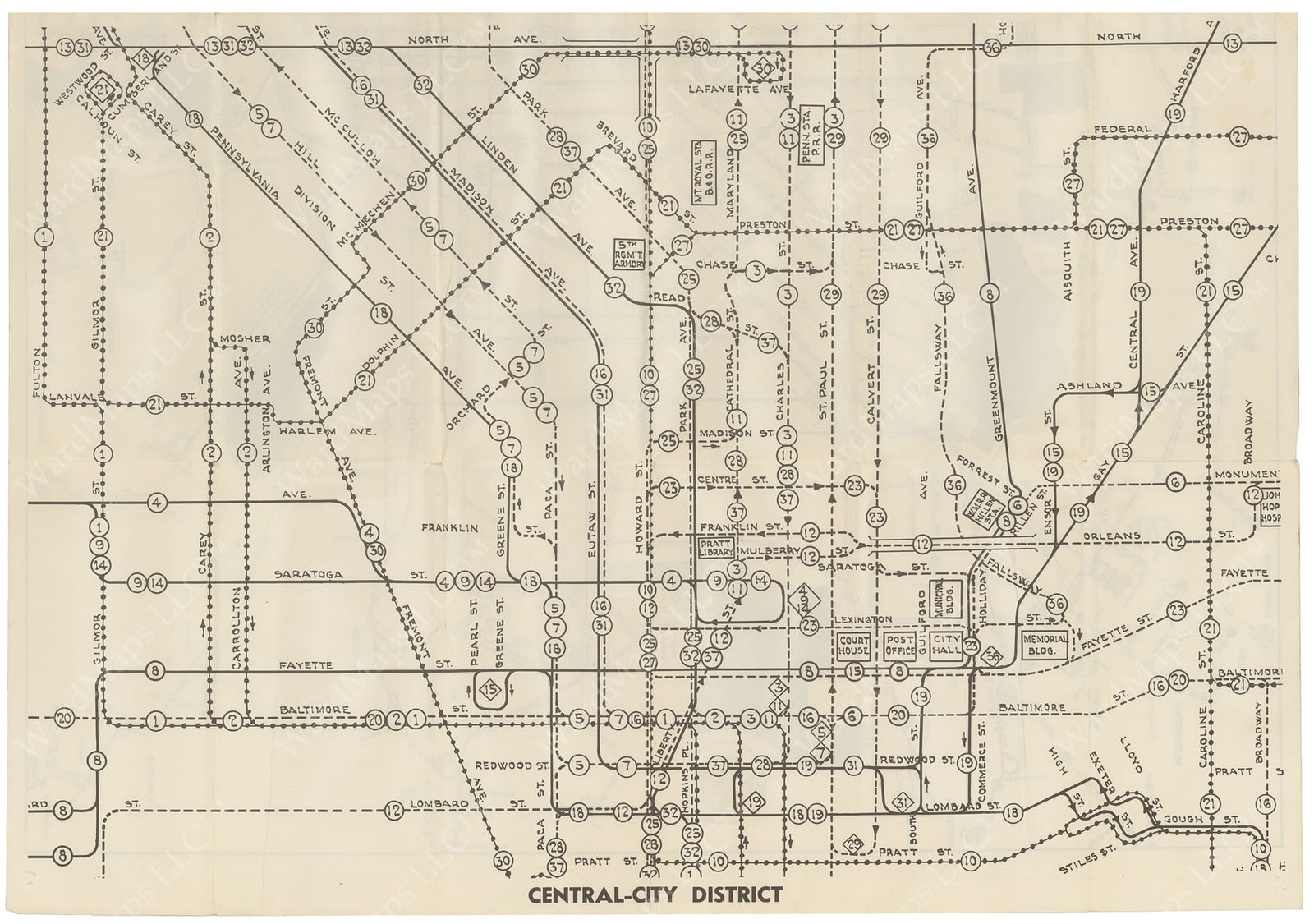Baltimore (Maryland) Transit System Map 1950: City Center
