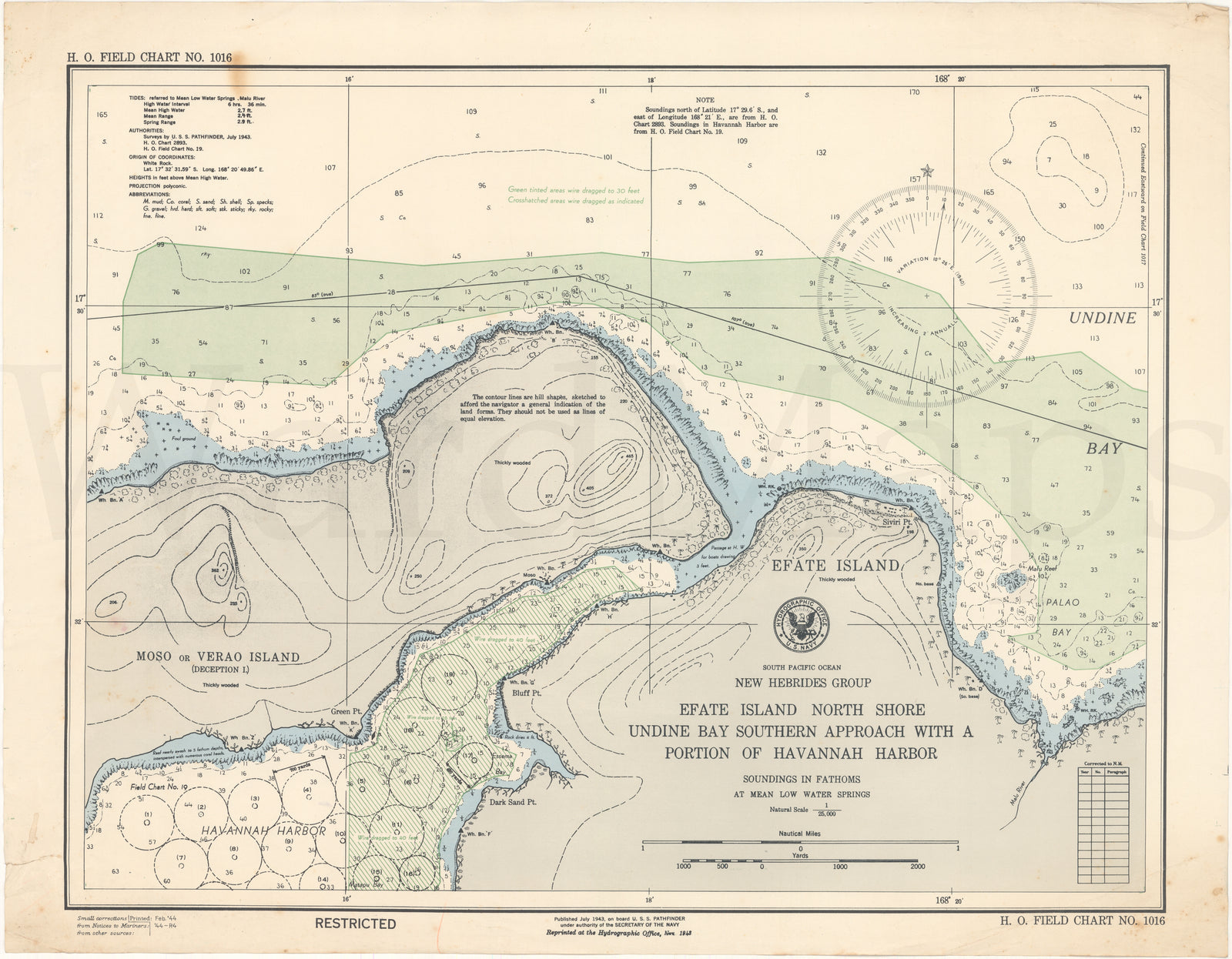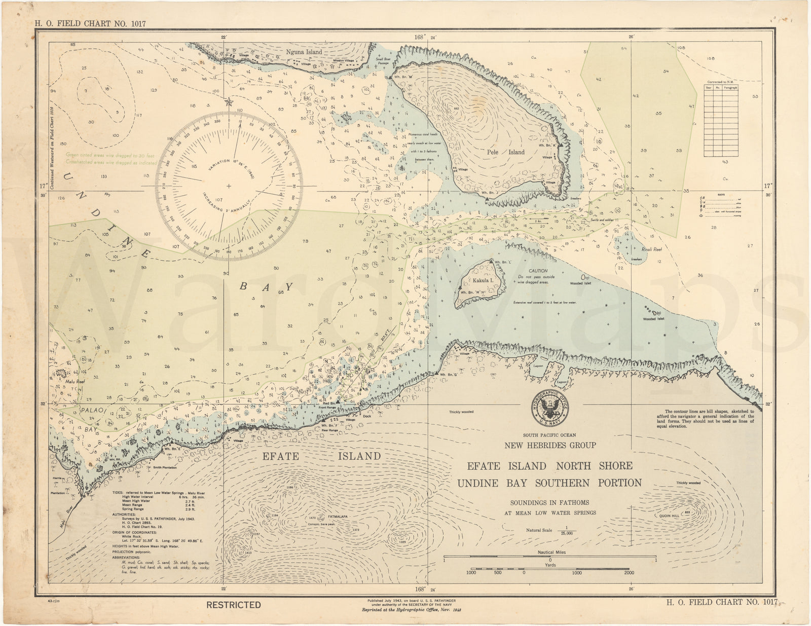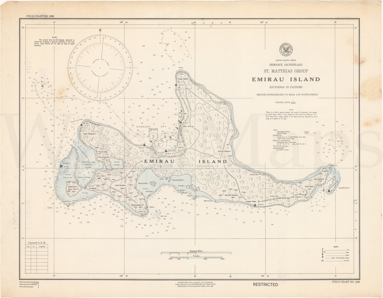 U.S.S. Pathfinder Navy Hydrographic Office Charts 1940s