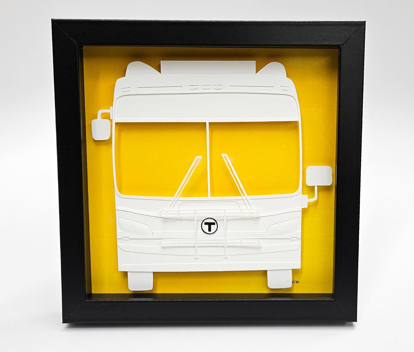 Boston MBTA Blue Line Subway Car Framed 3D Paper Art