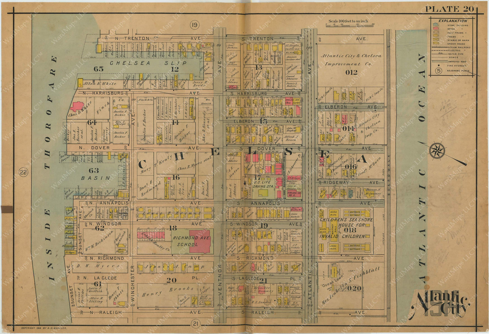 • What are Cadastral Maps? We specialize in cadastral maps, cartographic time capsules representing the natural and built forms of locales across America. Cadastral maps represent structures, building materiality, property ownership, and infrastructure. Cadastral maps were used by municipalities, real estate firms, attorneys, surveyors, insurance companies and others that needed a detailed record of where properties were located, what was built on them, and who owned them. Cadastral map makers used a graphic code of bright colors to indicate the construction types of the buildings, i.e. pink for brick and yellow for wood. Cadastral maps were published to paying subscribers in bound atlases. Each cadastral atlas depicted a specific county, city or neighborhood and typically had 20-40 maps known as "plates." Each plate showed a specific geographic area, usually only a few city blocks or a portion of a town. A few plates depicted part or all of one city ward, hence our moniker, "ward maps."