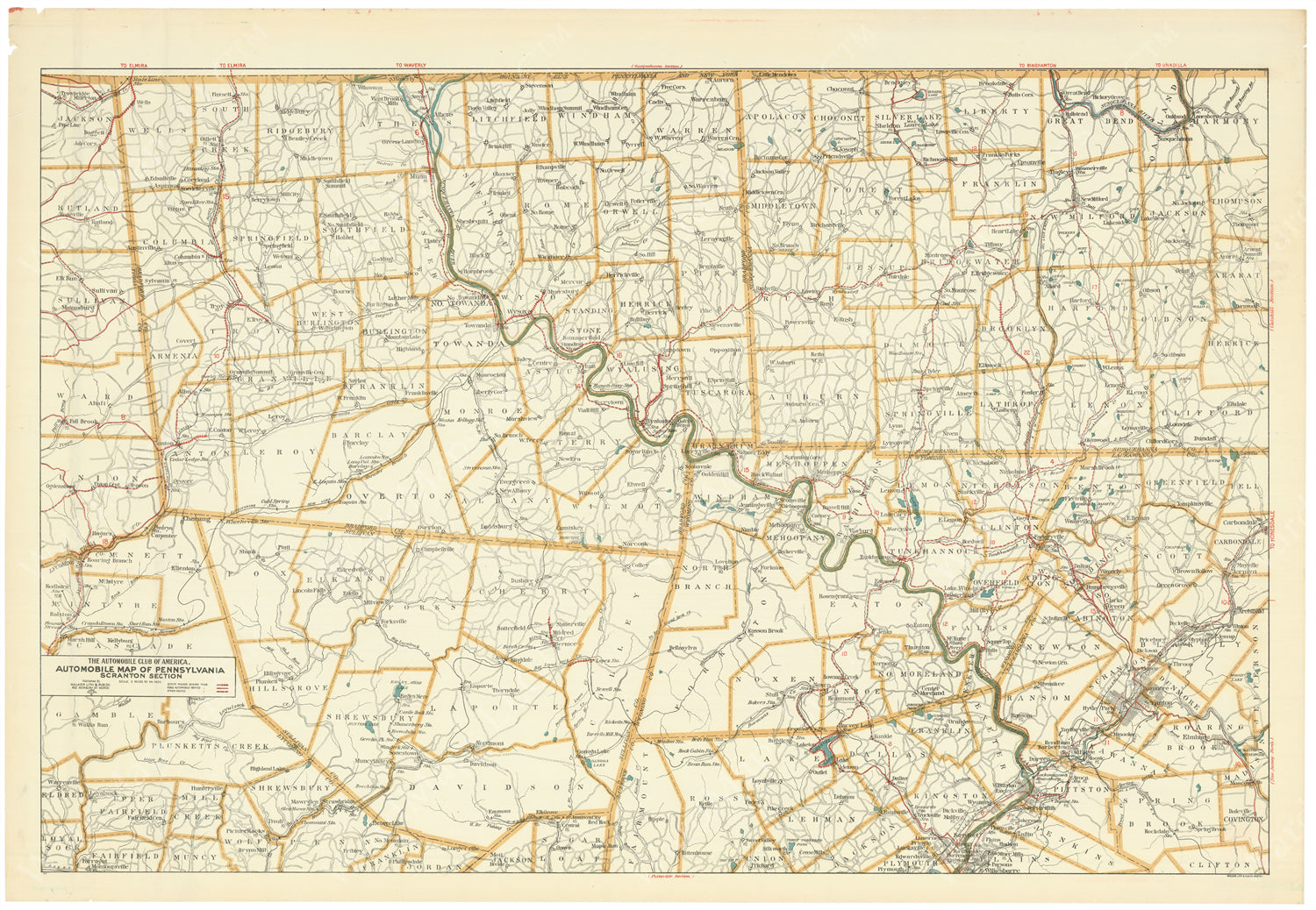 Automobile Map of Pennsylvania (Scranton Section) Circa 1910