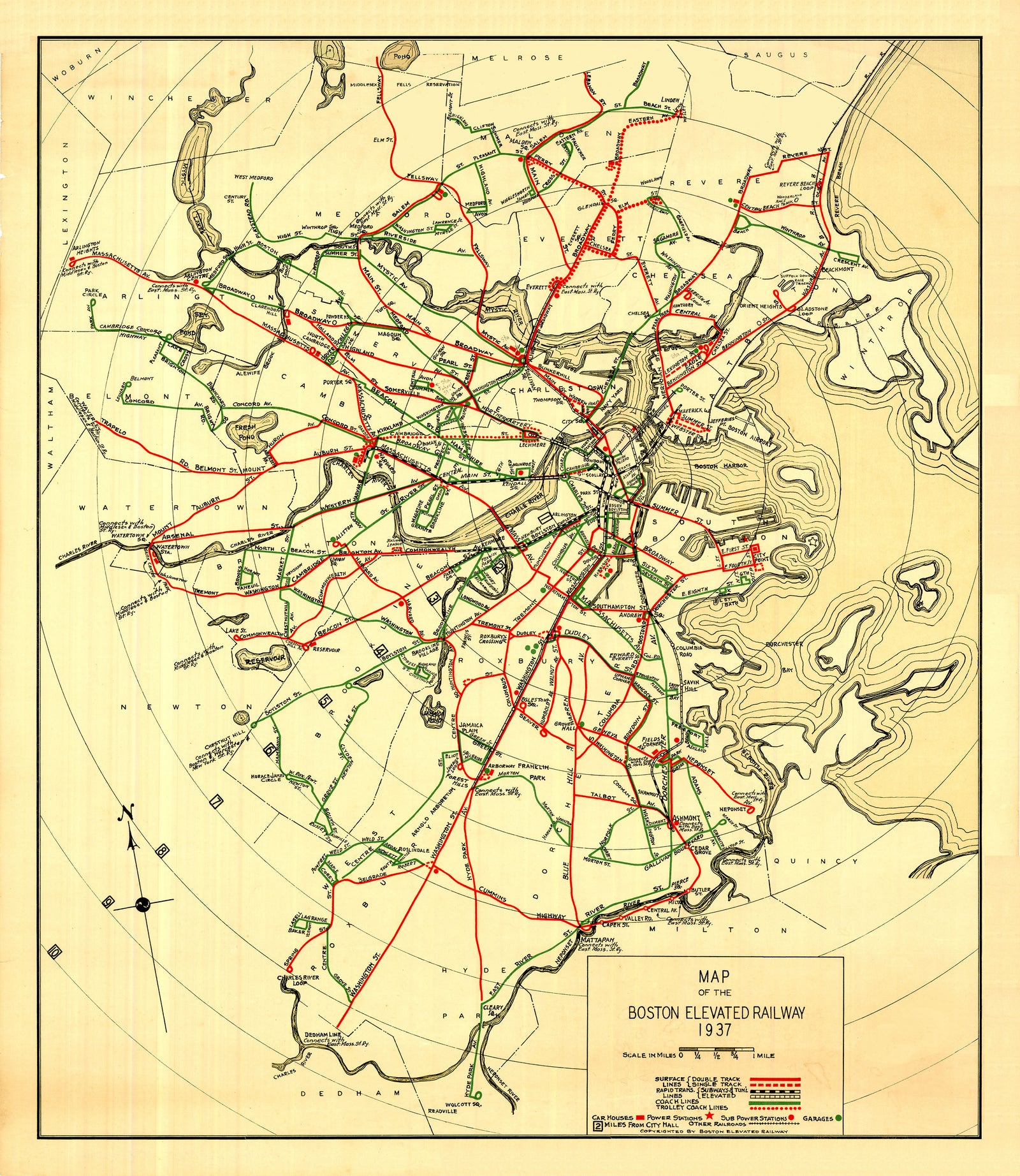 Boston Elevated Railway Co. (Massachusetts) System Map 1937