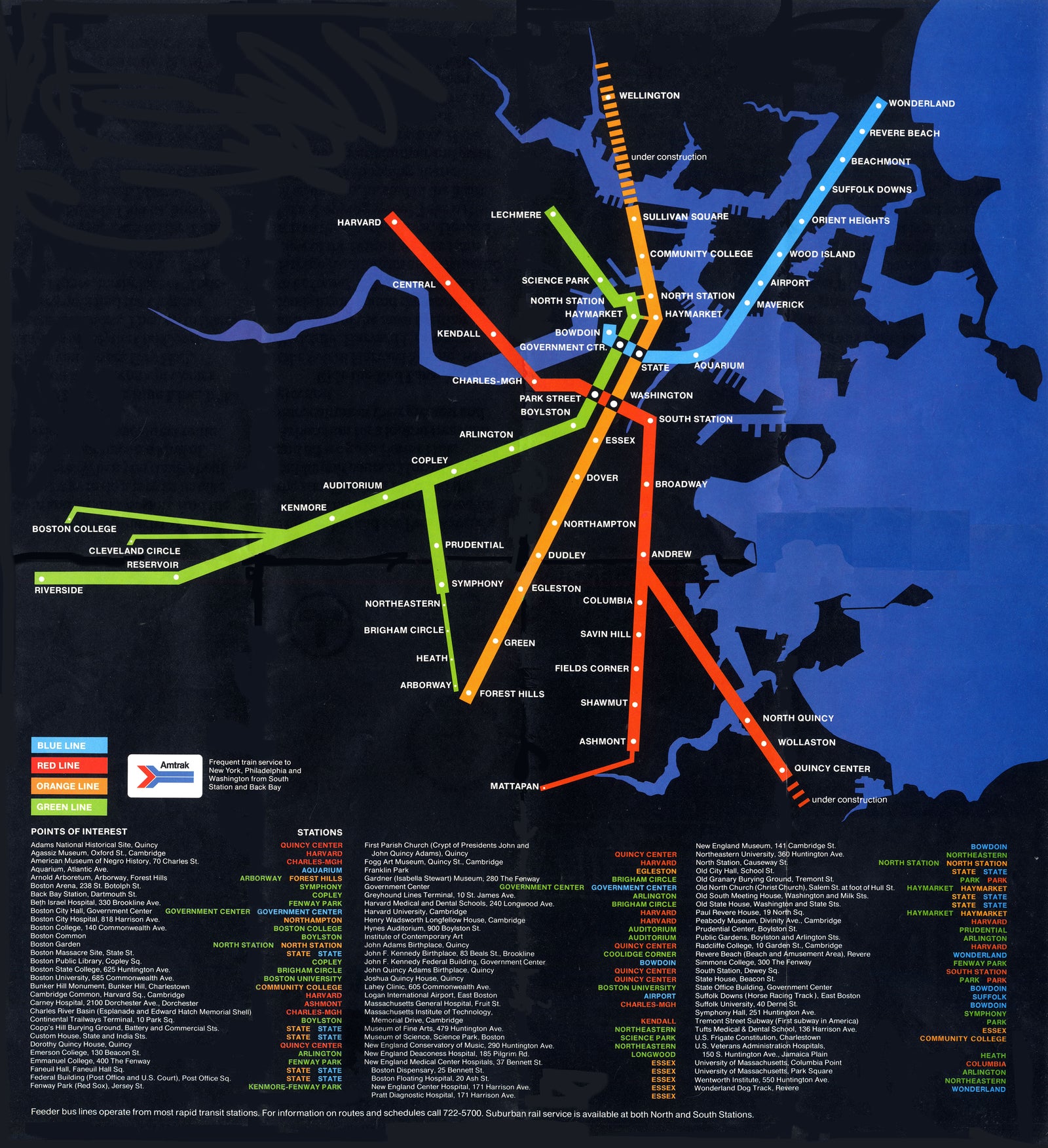 Boston, Massachusetts MBTA Rapid Transit Map 1976