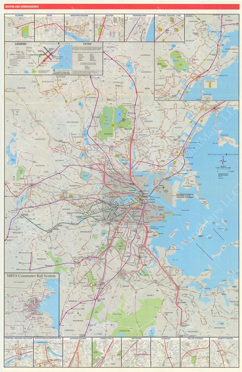 Boston, Massachusetts MBTA System Route Map 1996 (Side B)