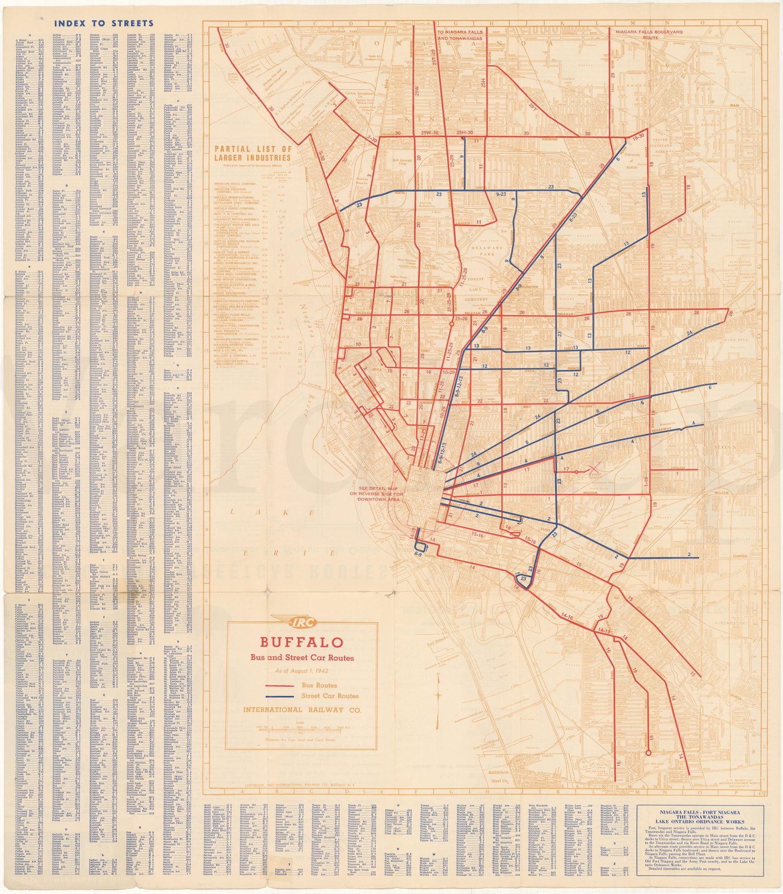 Buffalo, New York Bus and Streetcar Routes 1942 (Side A)