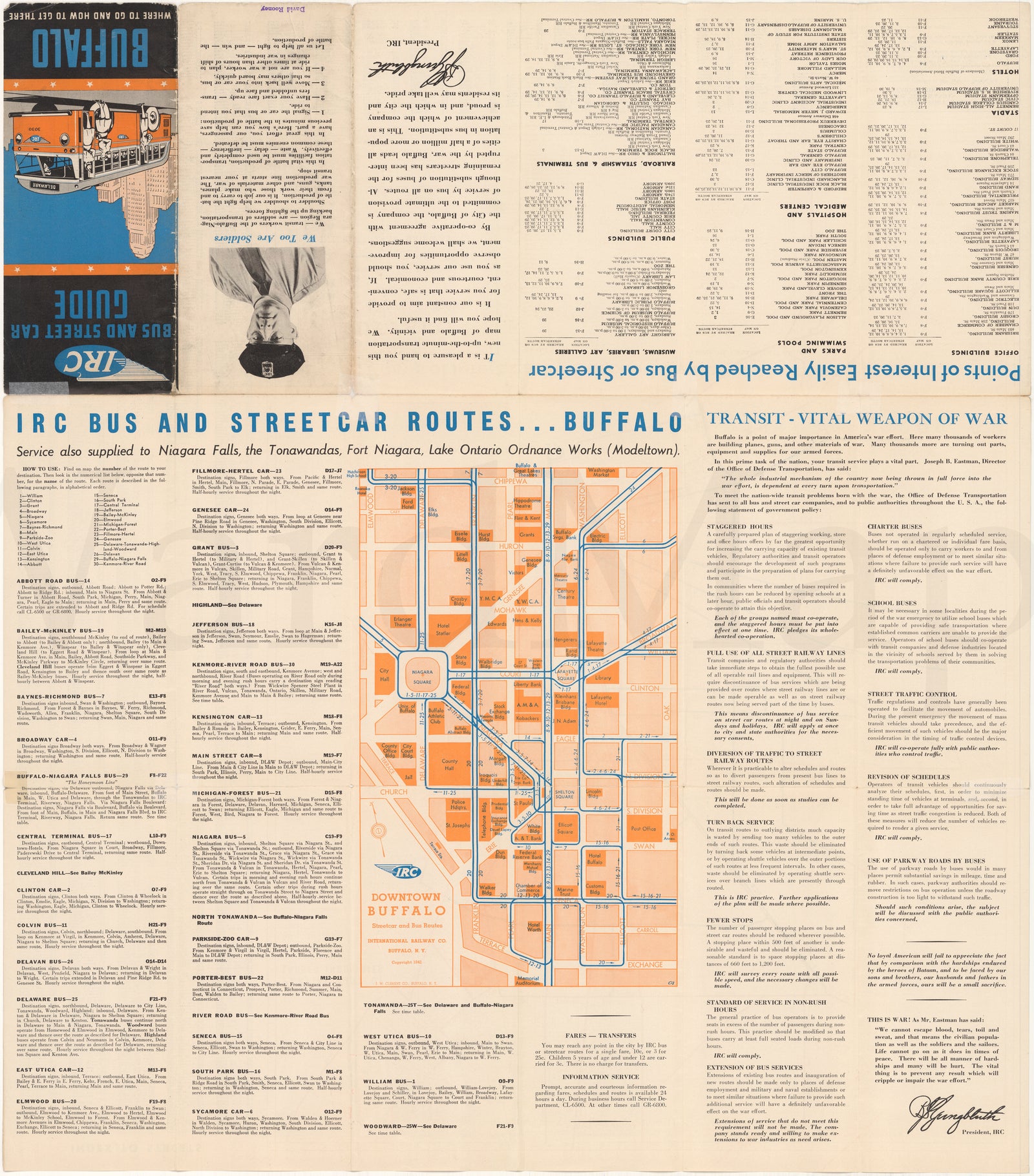 Buffalo, New York Bus and Streetcar Routes 1942 (Side B)